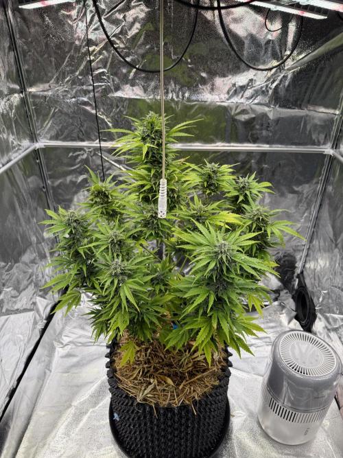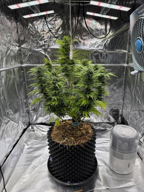 Diese Woche habe ich erneut die größten Blätter die die Triebe verdeckt haben entfernt. ……Trotz des mittelmäßigen Wetters passt es in Summe noch! In ca. 1-1,5 Wochen Kommen die ladies rein um die letzten. 4 Wochen drin zu reifen Der Pflanze geht es auf jeden Fall gut ( nach einer Woche wo ich gesehen habe das die blattfarbe zu hell wird habe ich seit 2 Wochen 1 mal in der Woche Bio PK zugeführt.…. das Wetter muss die nächsten 1,5 Wochen noch mitspielen und dann kommt Sie eben unter künstliches Licht in den Schrank….die Endgültige Größe ist super! Die Blüten entwickeln sich und sollen jetzt Gas geben