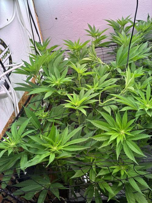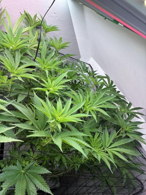 HavelGrower second week of flowering done. The were stretching like crazy. Installed a 3rd net to keep the stretch under control. Jumped from 35 cm to 83 cm in 2 weeks. They giving me some headache because of the hight. Should have send them 1 or 2 weeks earlier into flower. But it’s a lesson how to handle or not handle hybrids and sativas. Over all in was quite relaxing just adding water/ nutrients and doing some defoliation. So far so good. it’s quite easy to keep them on the same level with 3 nets. Still learning how to handle certain situations and conditions. But so far I am happy. They have got a massive need of Kalium at the moment. Should have given them more TA -Grow nutrients. But that’s party of learning. Really happy about the aeroponic setup. Really like the full control of the grow medium. (Compared to soil it’s easier for control freaks). Really water efficient compared to dwc/hydro/soil and changes made take effect pretty fast. Really nice oxygen supply at the roots and overall nice control possibilities regarding to roots and medium/solution. A possible downside could be that u can only use mineral nutrients and no organic nutrients. (We want some bacteria and fungus but not these ones that break down organic nutrients. That is more a preference thing than anything else. Good made hydro can compete with soil easily but most ppl put to much in there and ruin it any way. (Don’t want to trigger its good that everyone got its own style and evolves it in his needs and conditions.) The maintenance effort that is required for aero is a bit higher than soil and dwc but it pays off. (Personal opinion but numbers proof it) Looking forward to the next weeks and flower build up. Really excited about. Conditions of the Grow: 💡 PPFD: 900 umol/m2/s ☀️ DLI: 38.8 mol/day 🌓 Lightcycle: 12/12 h 💨 Humidity: 50-55 % 🌡️ 🌞Daytime Temp.: 22-24 *C 🌡️ 🌙Nighttime Temp.: 19-20 *C 🌡️🌱Leaf Temperature: 21 *C 🌡️💧Water Temperature: 19-20 *C Water TDS: 1100ppm | EC: 2200us/cm 🚰Watersource: Rainwater (TDS: 15ppm | EC: 0.03 us/cm Vegetation Equipment: 🔦 Lamp: Mars Hydro FC-E6500 📤Container: 3x DIY 63L Euro-Box with lid Pot: Netpot 2 inch 💦Pump: M.R.S. Ultimate Whisper Powerpump 22 bar 🚿Nozzles: 12x 0.3mm 🫧Waterfilter: 150 microns 🌬️Fan: 3x Clipfan 🌪️Duct-Fan: AC Infinity 200 mm with Controller and Carbon Filter 🍶Nutrient Brand: Terra Aquatica 🔬Sensors: Waterstation (EC, TDS, Temp, PH, Salt), CO2, Air Temp. & Humidity (VPD), Temperature-Sensor Root Container