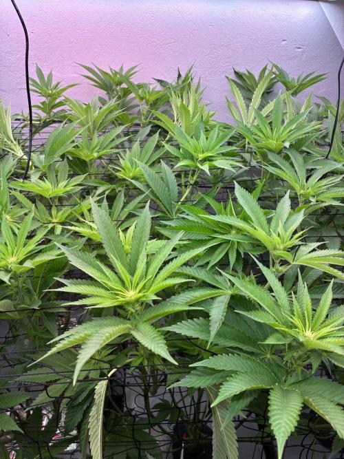 HavelGrower First Week of Flower. I gave them 36h of darkness before flipping to 12/12 light schedule. Canopy is filled somewhat good and more important is a even canopy. Installed a second net in the middle of the week. The support will be necessary later. Did a bit of defoliation but the lollipop will be done in 2 weeks. Conditions of the Grow: 💡 PPFD: 900 umol/m2/s ☀️ DLI: 38.8 mol/day 🌓 Lightcycle: 12/12 h 💨 Humidity: 50-55 % 🌡️ 🌞Daytime Temp.: 21-23 *C 🌡️ 🌙Nighttime Temp.: 18-19 *C 🌡️🌱Leaf Temperature: 21 *C 🌡️💧Water Temperature: 18-19 *C Water TDS: 1000ppm | EC: 2000us/cm 🚰Watersource: Rainwater (TDS: 15ppm | EC: 0.03 us/cm Vegetation Equipment: 🔦 Lamp: Mars Hydro FC-E6500 📤Container: 3x DIY 63L Euro-Box with lid Pot: Netpot 2 inch 💦Pump: M.R.S. Ultimate Whisper Powerpump 22 bar 🚿Nozzles: 12x 0.3mm 🫧Waterfilter: 150 microns 🌬️Fan: 3x Clipfan 🌪️Duct-Fan: AC Infinity 200 mm with Controller and Carbon Filter 🍶Nutrient Brand: Terra Aquatica 🔬Sensors: Waterstation (EC, TDS, Temp, PH, Salt), CO2, Air Temp. & Humidity (VPD), Temperature-Sensor Root Container