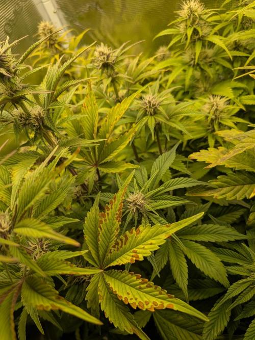 therealgrowmie The plants are demanding way more nutrients at this stage - and unfortunately, they’re almost outgrowing the grow space 😅. We’re seeing medium-level deficiencies across the board and some mild heat stress (tacoing leaves).