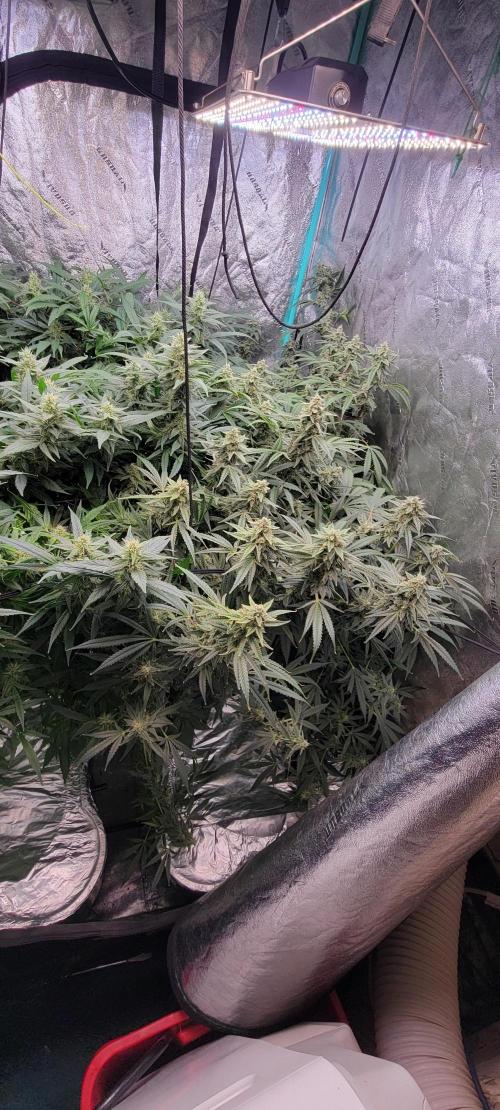 Stonerandgrower They're just over 6 weeks since sprout and hulkberry is 2 weeks since budding. The strawberry cough just started a couple days ago. andd the lighter one on the left is strawberry and the darker one is hulkberry