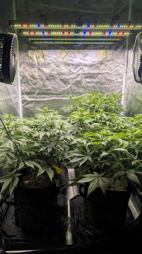 Madd_Rez Forgot to post last week. Did some HEAVY defol on both OCRs. Apple Glitter has not been happy with me but she's still chugging along. May need to swap her out with another tent just due to size and timing. Well see.