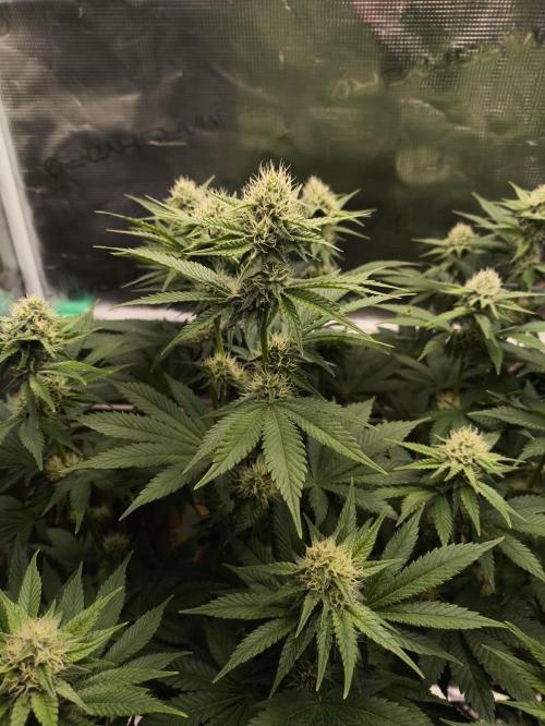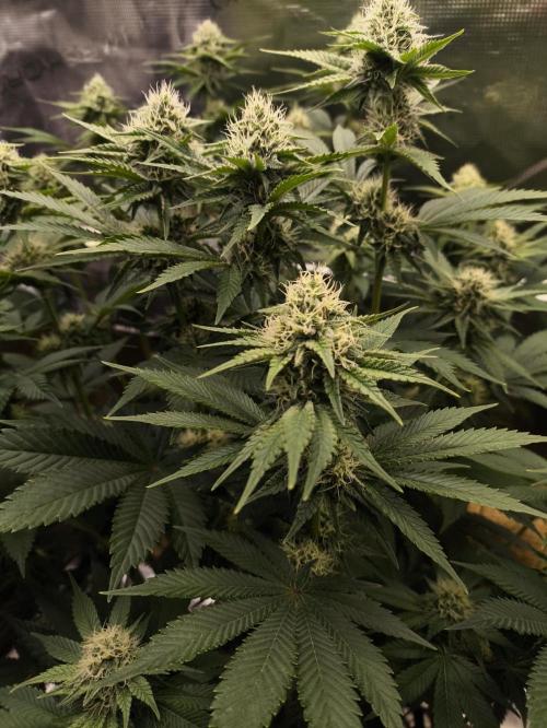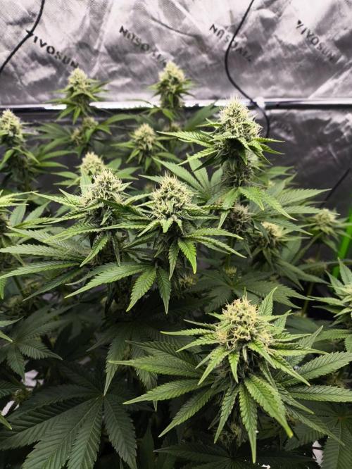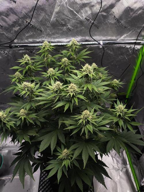 GrowerBaal The plant grew well and reached 63 cm on day 63 or day 31 on 12/12. The buds have swollen rapidly over the last week. But as i have discovered mildew in another tent i erased a lot of leaves and some branches to reduce the humidity and the risk leaves are touching each other. Hope this solves the problem as i dont want to spray Purolyt in all tents as it also effects the plants. Have not had this problem before, hope it does not spread all over.