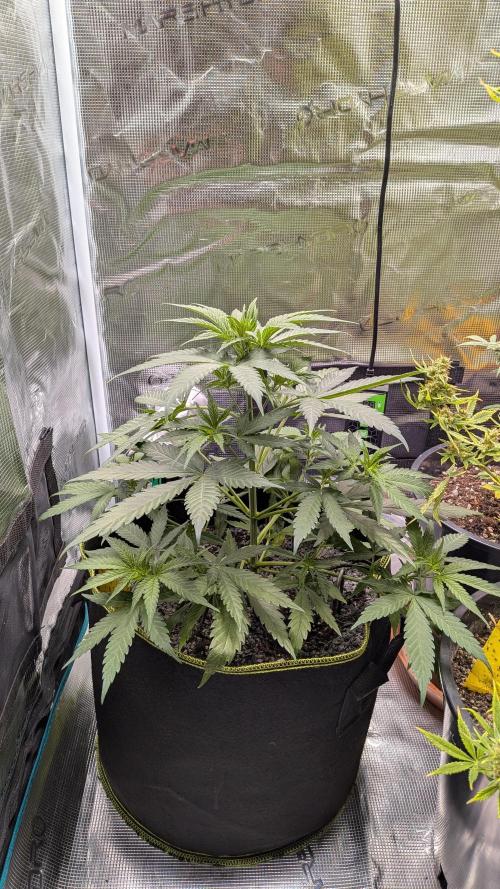 Die Pflanze sieht kräftig aus, ich denke über ein Topping nach, damit sie sich mehr verzweigt.