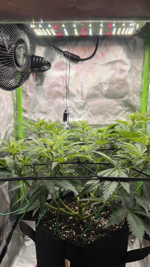 Growtendo64 Budshot Betty continues to look strong and compact. After topping above the 4th node and some light LST, she is shaping nicely for the upcoming SCROG.