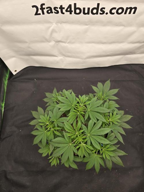 She’s filling out nicely, and I’m really excited to see her start flowering. I’ll be doing a light defoliation before flipping her to 12/12 this week to open up those bud sites a bit more.