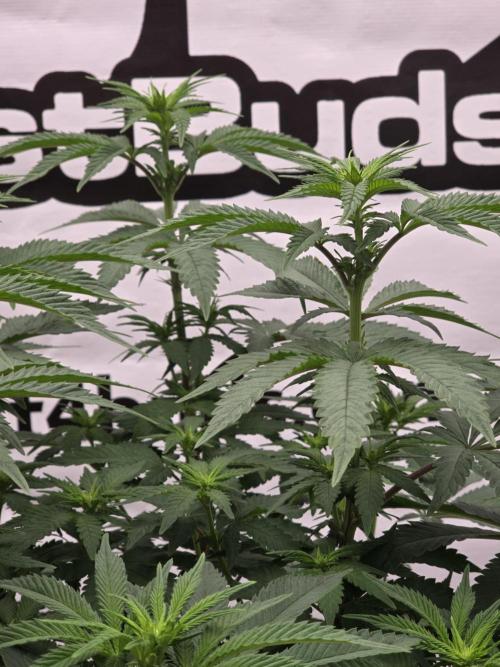 She’s coming along really well this week, showing no deficiencies and taking nutrients smoothly. Stems are thickening and overall growth looks strong and healthy. Topping is under consideration depending on how she continues to develop.