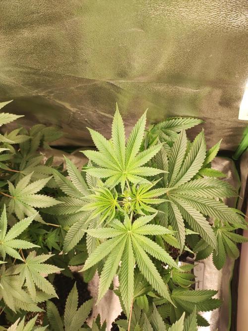 Bncgrower We've reached the end of another week. I decided not to prune this girl, I just did some LST to improve the light distribution. This girl is very strong, the fan leaves at the bottom are bigger than my hand, they look like a castor oil plant leaf. She's showing great development, and will soon go to the flowering tent as well so that the time between them doesn't vary too much.