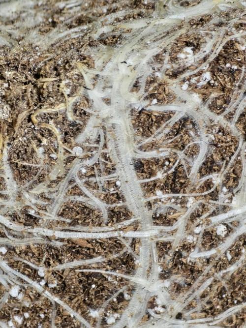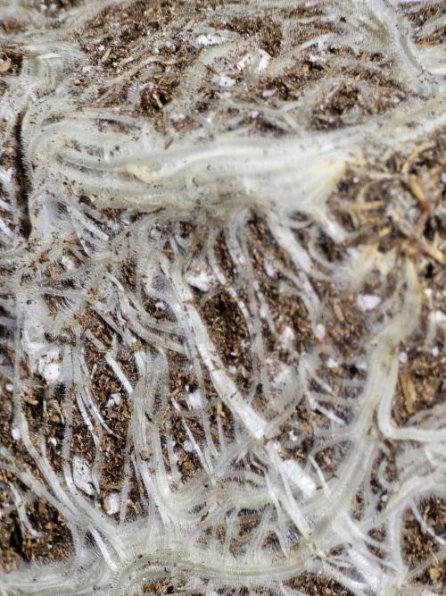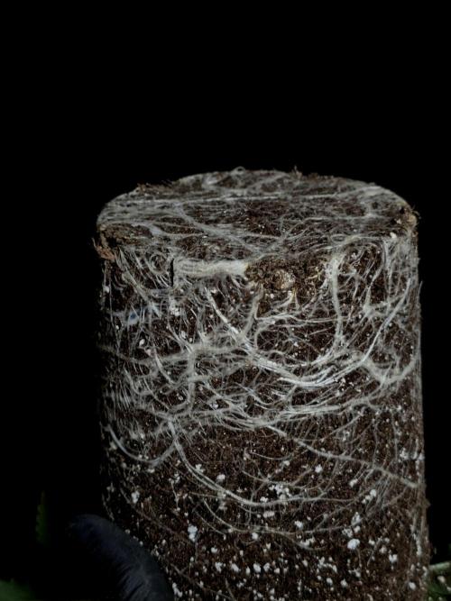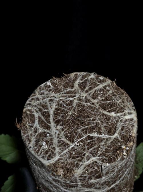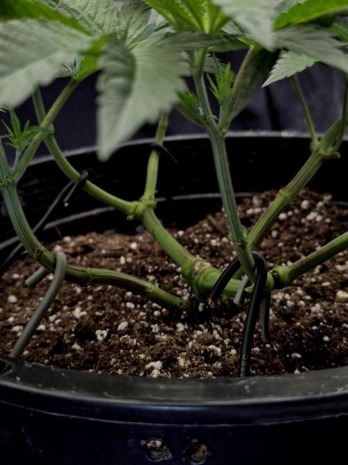 Her roots looked great at transplant with Mykos WP doing its thing. She was moved into a 5-gallon pot this week and topped.