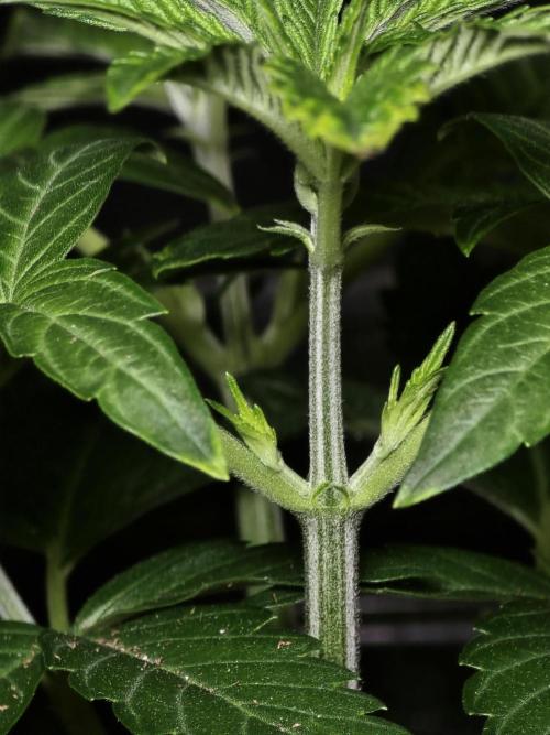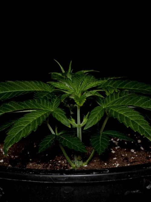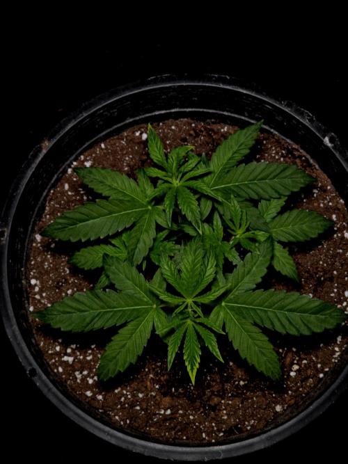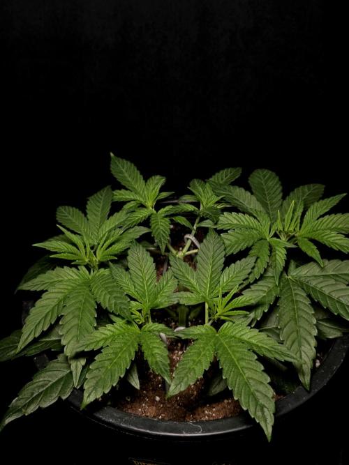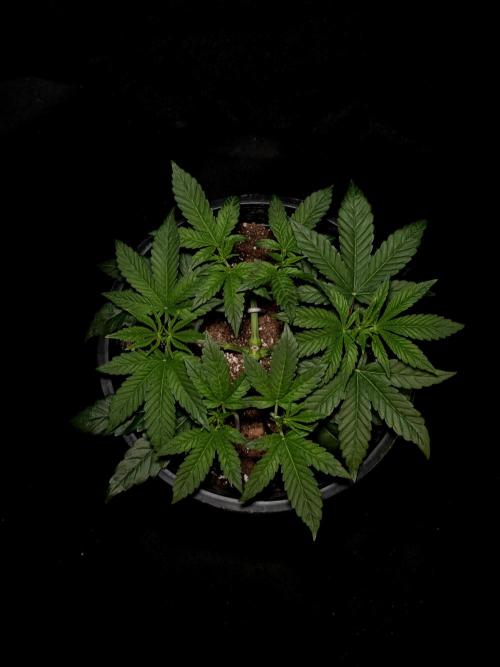 She’s growing really well this week, showing no signs of deficiencies. Her stems are starting to thicken, and overall she looks strong and healthy. Topping is on the table soon, depending on how she continues to grow out.