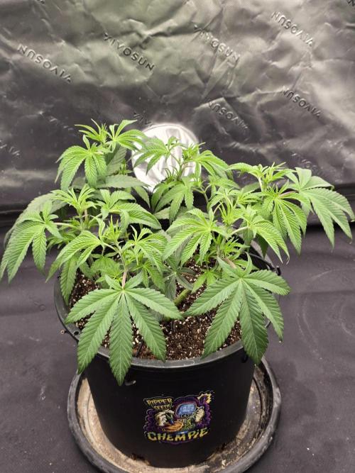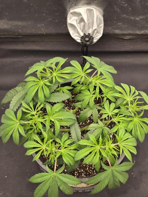 She’s growing really well this week, showing no signs of deficiencies. Her stems are starting to thicken, and overall she looks strong and healthy. Topping is on the table soon, depending on how she continues to grow out.