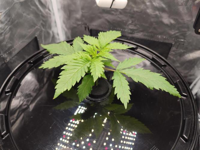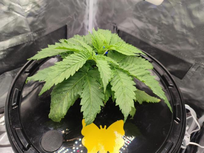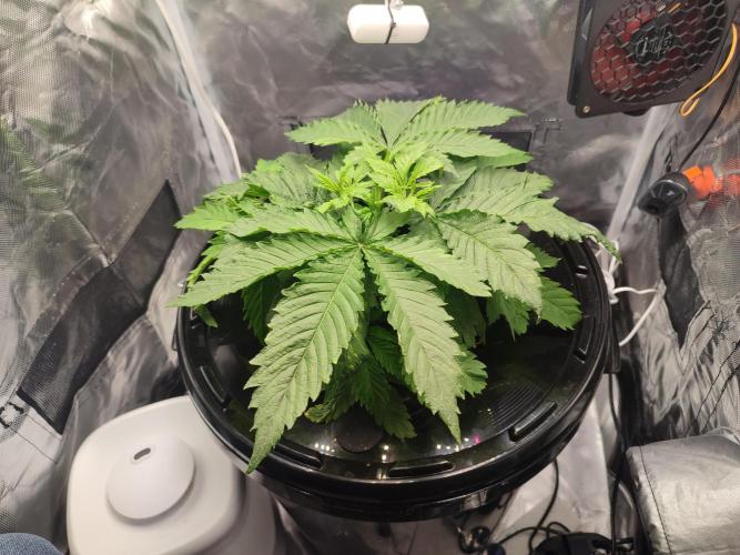 Germanator The first week went really well. I wanted to grow two plants in one bucket but as the other seed didn't find its way out of the substrate, I'm down to only this one and oh boy is she growing quickly! After four days I decided to raise the nutrient level and am now up to the recommended values from the T.A. plan. She seems to like her new home so far. The weather is pretty warm currently and I hope that my solution doesn't get too warm as I feed the air from inside the tent. So fingers crossed it all works out