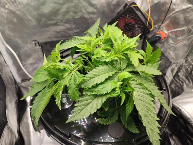 Germanator Had some unwanted guests in my tent and started to use some Neemoil to get rid of them. So far the plant looks nice and healthy despite some lighter spots.
