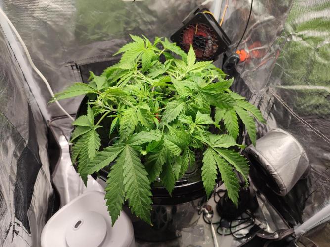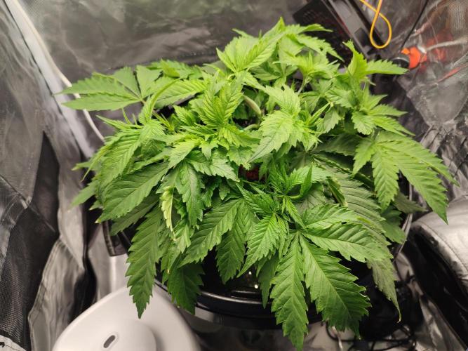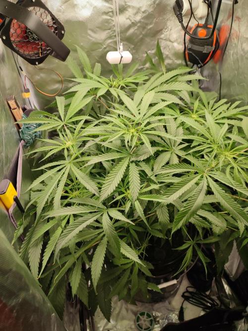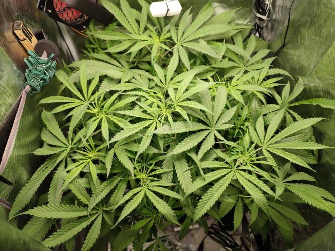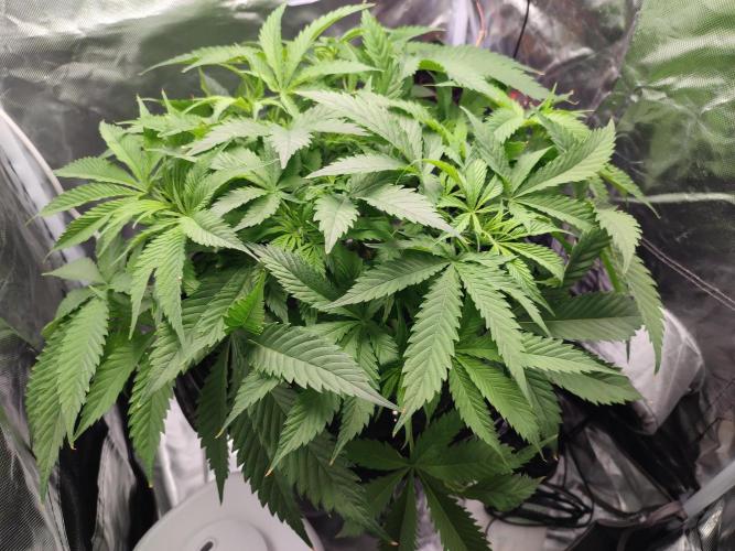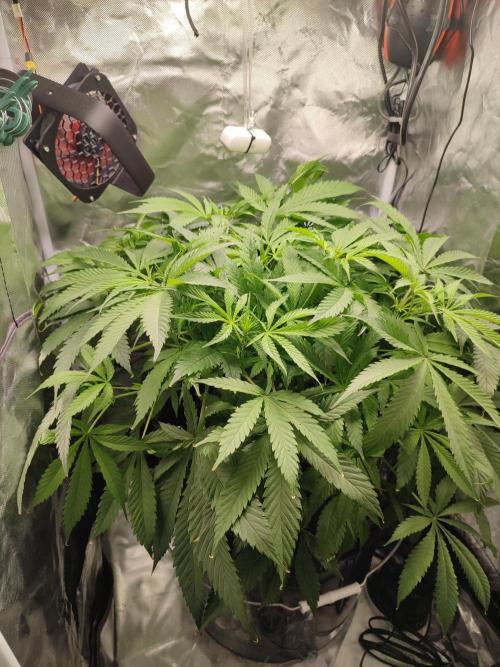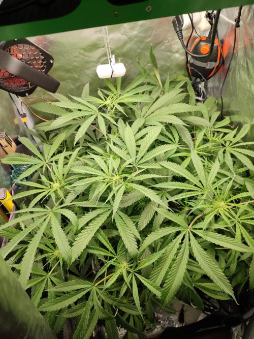 Germanator Switched the light to 12/12 on Monday and removed a lot of leaves and lower branches on Saturday. This plant is a beast and always pushes back stronger and stronger no matter what you throw at her.