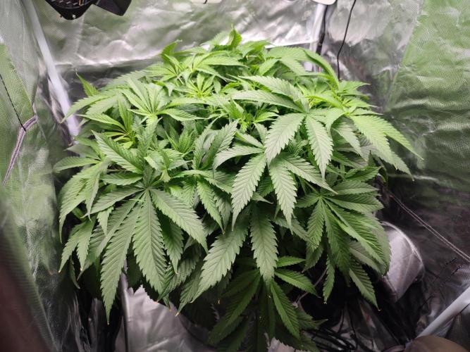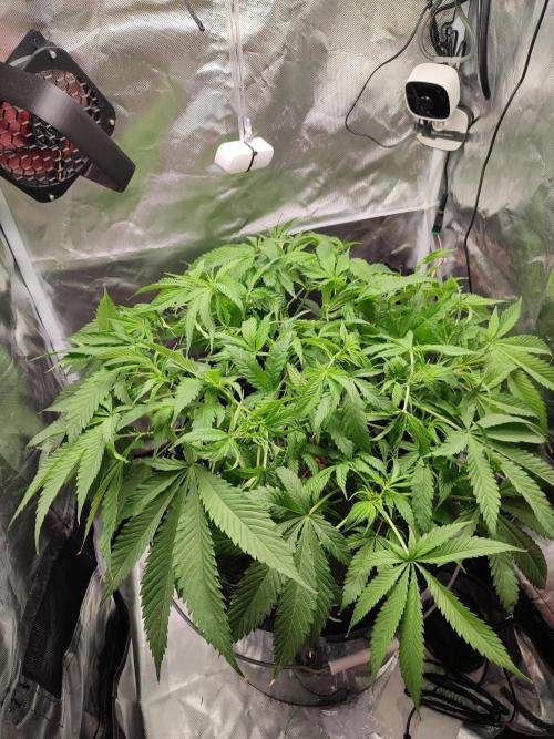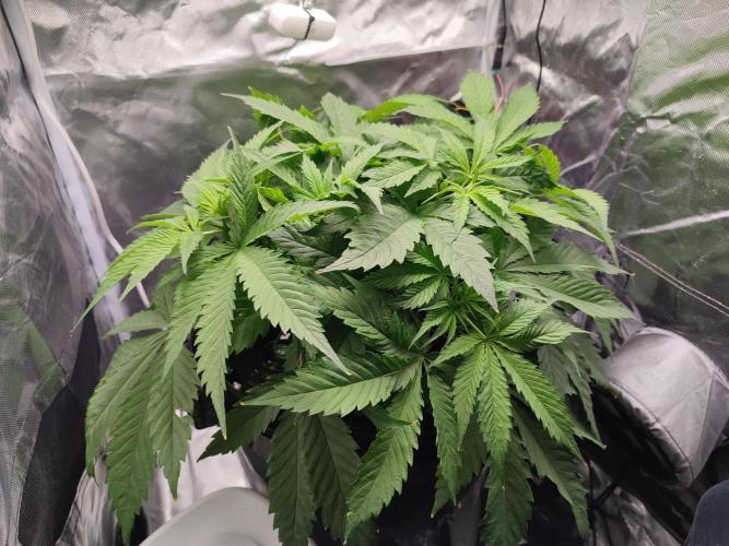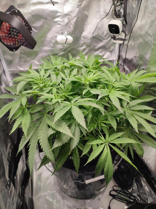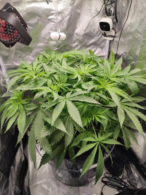 Germanator Had to take away even more leaves. Soon she'll take up the whole tent although I'm not planning of weaving her into a net or something. Hopefully she'll bear the weight of the Buds on her own.