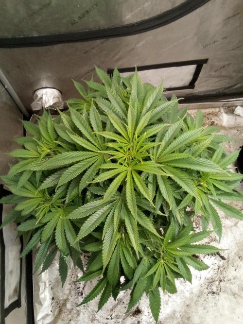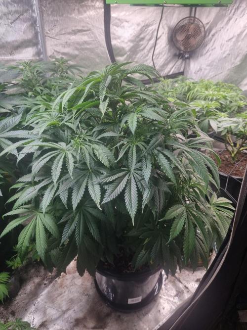 Terpy_Burpz Wow did she explode after the transplanting 8 days ago! Im loving her vigour and really enjoying the weird extra fingers showing up on either side of the central finger of the big fan leaves. Something i dont think ive ever seen before! Going to start winding the clock back an hour a week in a fortnight time (October 1) so as to be aligned with the amount of daylight hours that will be naturally occuring outside at the time of transplanting outside on Nov 1st. This slow timing alignment will prevent my plants shocking and going to flower like they would should i just put them out of the tent where they are getting 18 hrs of light to the 13.5 hours of light outdoors. This should insure my plants adjust in the best possible way. From mid October i will be putting them outside for a few hours a day to harden them up for their new life in the wild outdoors! Exciting times ahead..so stayed tuned for more!