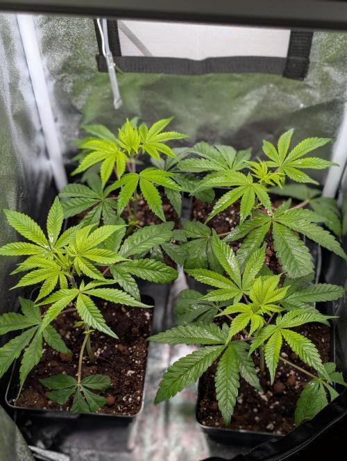 Green_Zyphoria My Biscotti Gelato is now at the end of week 5 and she's been a busy girl. She's gained some good size this week, and the side branches have really stretched out. I'm still only feeding her plain water, but the plan is to take the first clones from her around the middle of next week. I'll be misting the leaves with Clonex Mist beforehand to get them ready. :)