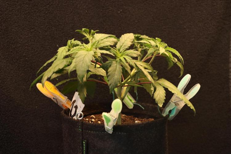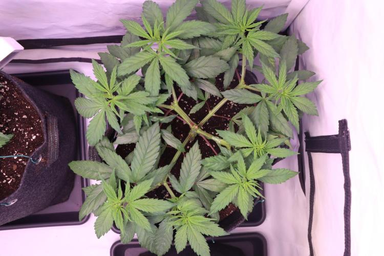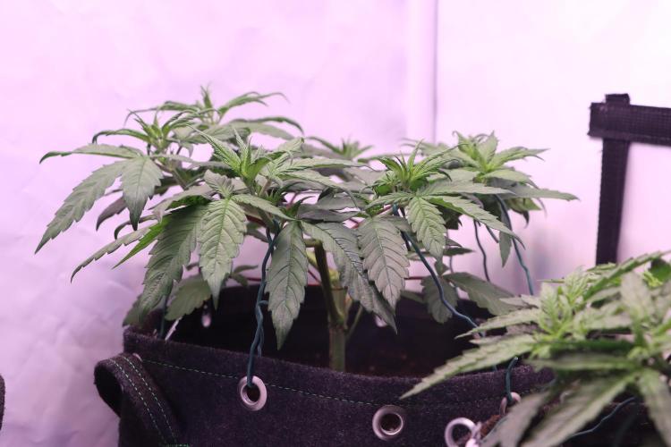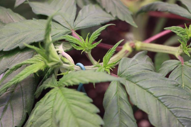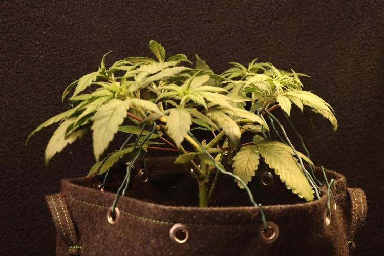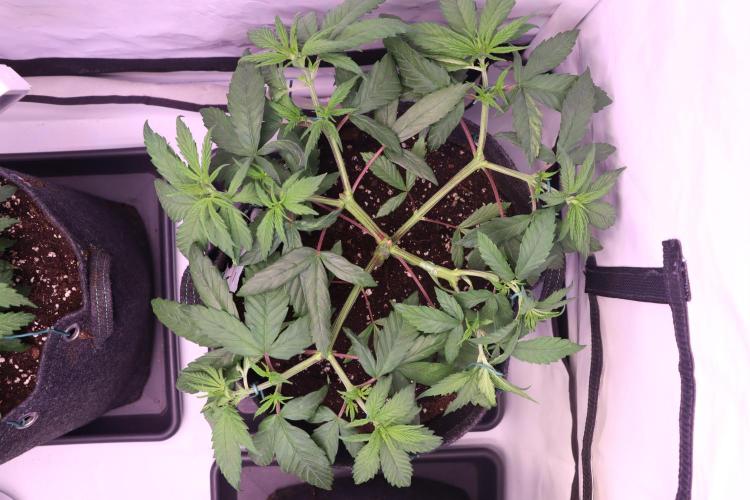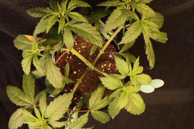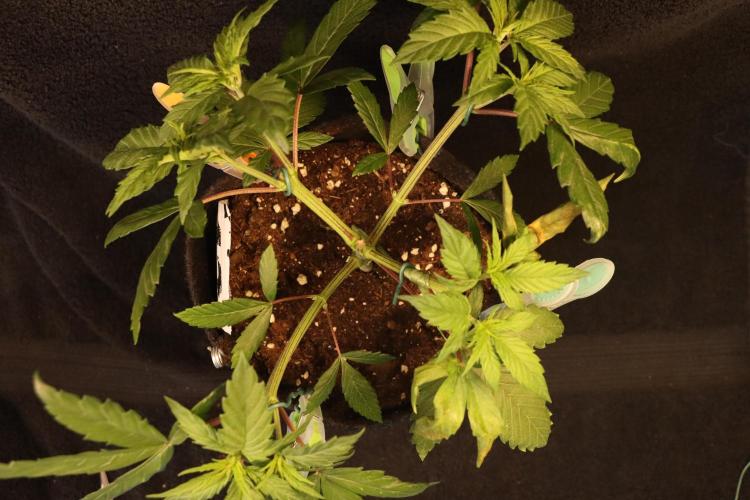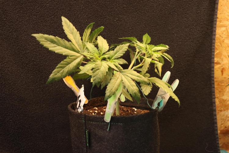 So, I fucked that up, after topping, I was trying to fit some bending clips, to bring her down to the same level as the other plants (for even canopy), and snapped on of the stems ....