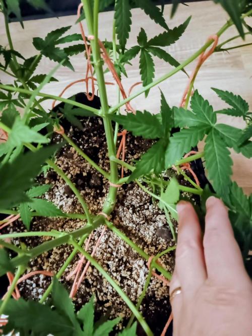 Targona 22 days since my little girl sprouted from the seed🌱 The third week of growth of my Break-up Cake Auto 🥧💚 Nutrients: Plagron and Biobizz 💓💚: This week I am applying the classic root stimulator Plagron Power Roots: Plagron Roots root stimulator is a biological root stimulator that supports the formation of the root system. It contains 7.2% humic acids, 3% kelp (a beneficial extract of brown seaweed), 3% metabolites and 0.3% thiamine (vitamin B). It acts not only on the roots, but also on the entire plant. It increases the plant's defenses and is absorbed very quickly. 🍃🍃 ---------------------------------------------------------------------- BioBizz Bio Grow is a 100% organic, but also vegan-friendly fertilizer with BIO certification. Designed for the growth phase. Supports soil microorganisms and is ideal for use in all types of soil substrates and coco 💩💚 ------------------------------------------ Plagron Vita Race (Phyt-Amin) - is an organic foliar nutrient rich in iron that improves growth, photosynthesis and plant resistance. It is applied as a spray on the leaves during the growth and early flowering phase 💩🌱 ---------------------------------------------------------------------------------------------------------- BioBizz Calmag is a 100% organic, but also vegan-friendly fertilizer with BIO certification. Biobizz Calmag was designed for professional growers and home growers who need an extra dose of calcium and magnesium. It contains the addition of humic acid 💩☘️- I only apply it once a week. ------------------------------------------------------- Biobizz Bio pH-/ Biobizz Bio pH+ is a 100% natural and vegan-friendly pH regulator. Suitable for all types of substrates and crop types. For use in growth and flowering. 💩🍋🌱 ------------------------------------------------------- PRO-MIX CONNECT MYCORRHIZAL POWDER - in the substrate Generally: Break-up Cake Auto 🥧💚 The plant is already in pre-flowering 🌺, but flowering has not yet begun, so this week I am still giving nutrients for vegetative growth. However, this week - the third week - in most cases it does LST and defoliation twice 🍃 🌿 I think the plant is slower because it is growing poorly, anyway it was able to cope and in the end it is a strong, sturdy and beautiful plant, even if it is different. I am very proud of it 💚💪👍 I use the new PH and EC meter Aqua Master Tools P110 PRO, the measurement is fast and accurate. So far I manage to keep the PH and EC as they should be. I use Biobizz Bio +/- for correction. These are excellent products. I think that the plants definitely have a very good effect of spraying with Vita-Race and the excellent PRO-MIX Connect Mycorrhizal powder for root support. All the girls have been very strong and stable since they were little 💚 Training: As I mentioned above, I did the first LST and defoliation, the plants usually quickly re-leaf, other branches also grow quickly. So in this third week I do two defoliations and two LSTs 🍃🌿 This plant is a little different, but I still did a very good LST and the plant is now making two main buds 🌺 The girls are growing in a tent: Mammoth Pro+ 80, with reinforced reflective Mylar 600D foil Lighting: Mars Hydro TS1000, this light is sufficient for lighting in my growing space. The plants respond effectively and the light is technically very well managed - I try to have 50cm between the light and the plants, so I regularly move it up. Mars Hydro TS1000 Quantum Board 💡💡💡 Power: 148W Dimensions: 90 x 90 cm Dimensions: 360 x 330 x 34 mm Chip brand: Epistar Thanks for the likes See you soon 😍😻