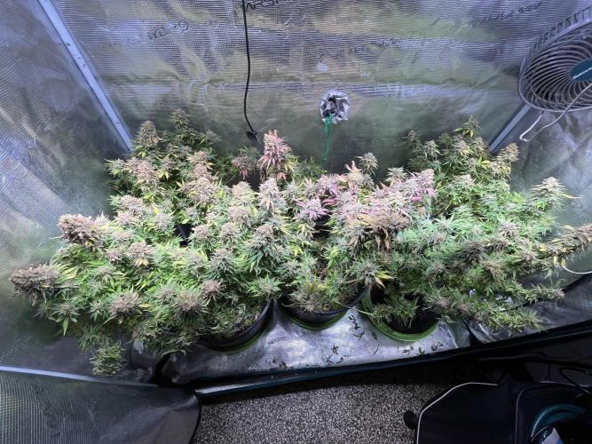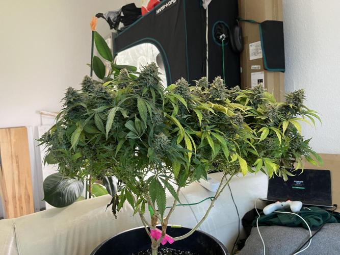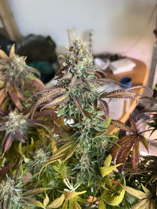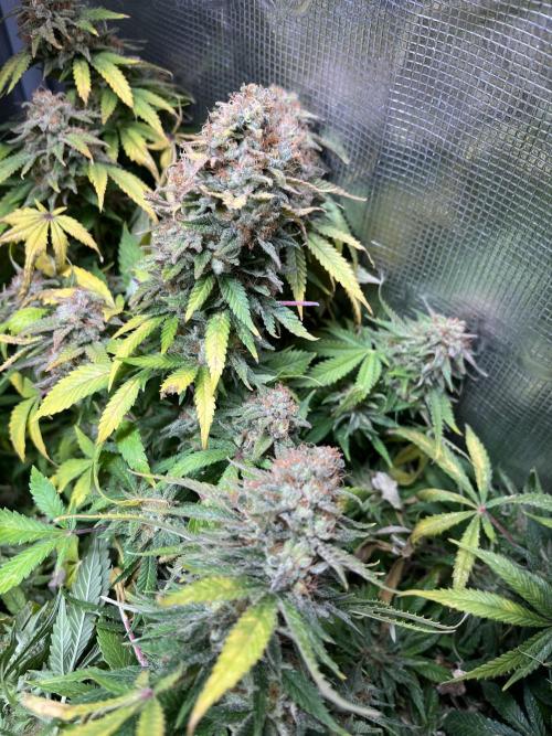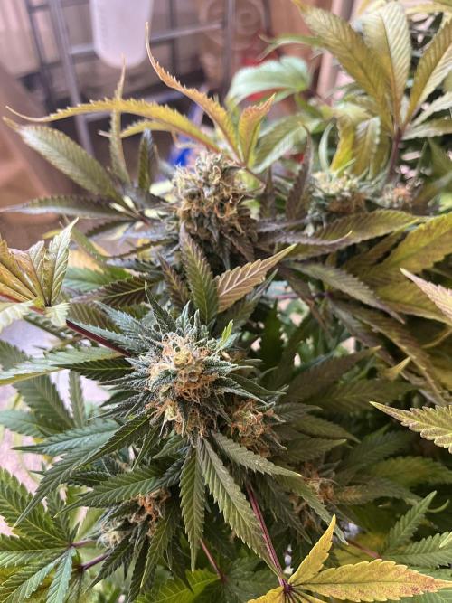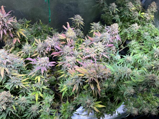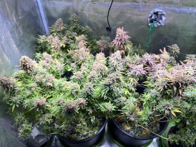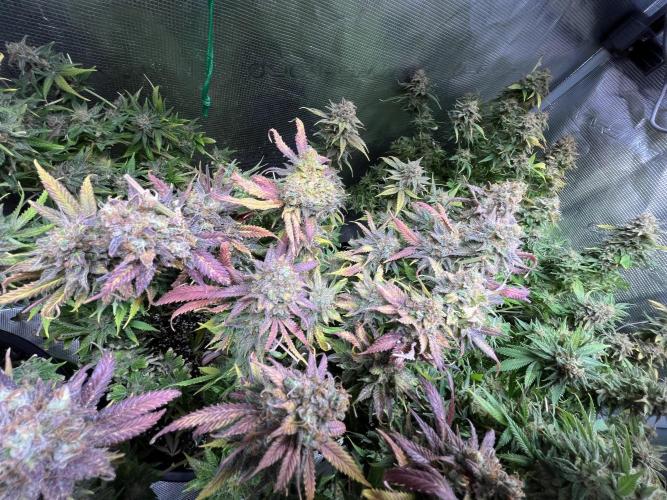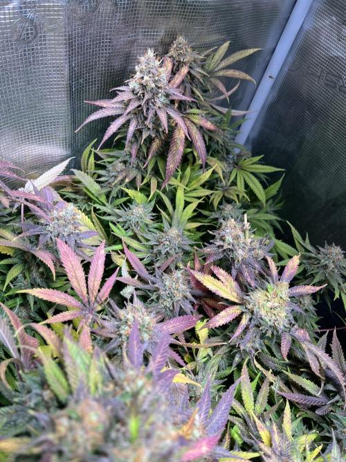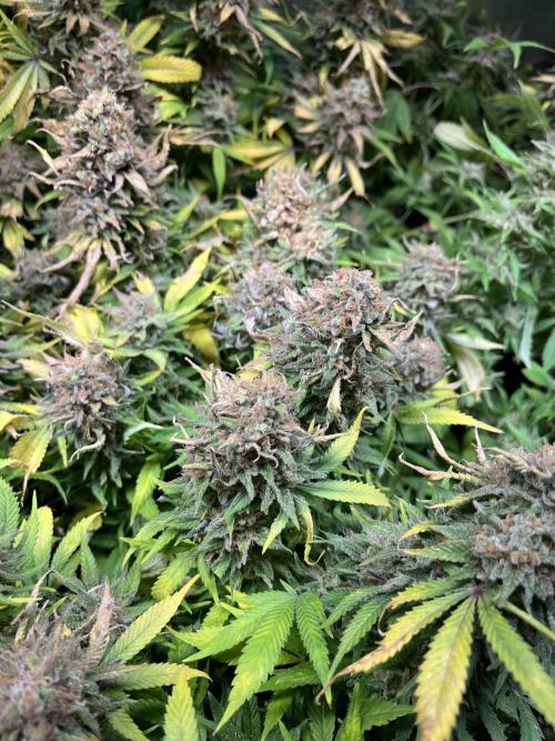 Lowbuds Buds getting bigger, still haven’t completely fixed that phosporus defficiency so still some yellowing. Temperature seriously dropped the last week and some purple color appear on the “pump juice” pheno. Thrips are totally gone, probably a mix a de larvae and colder weather. Smells really nice and citrusy, grapefruit vibe and a bit more funky / gassy on the “pump juice pheno” I should have lollipoped better as there as a lot of larfy growth under the canopy not getting any light or air on the “ghost nap” pheno