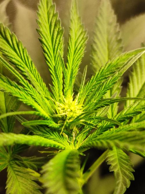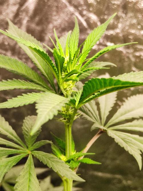 The first signs of flowering are appearing and she's doing fine! She is growing a lot and nice and green, as expected as we are using biotabs!!