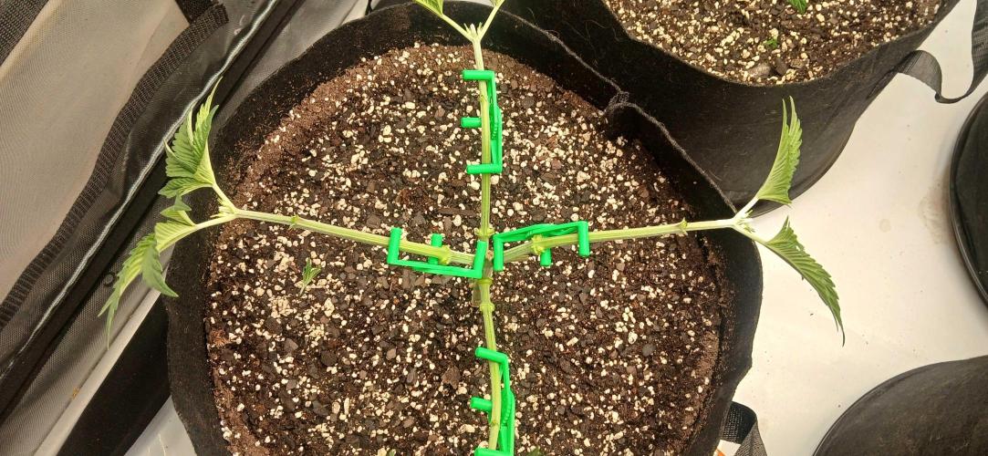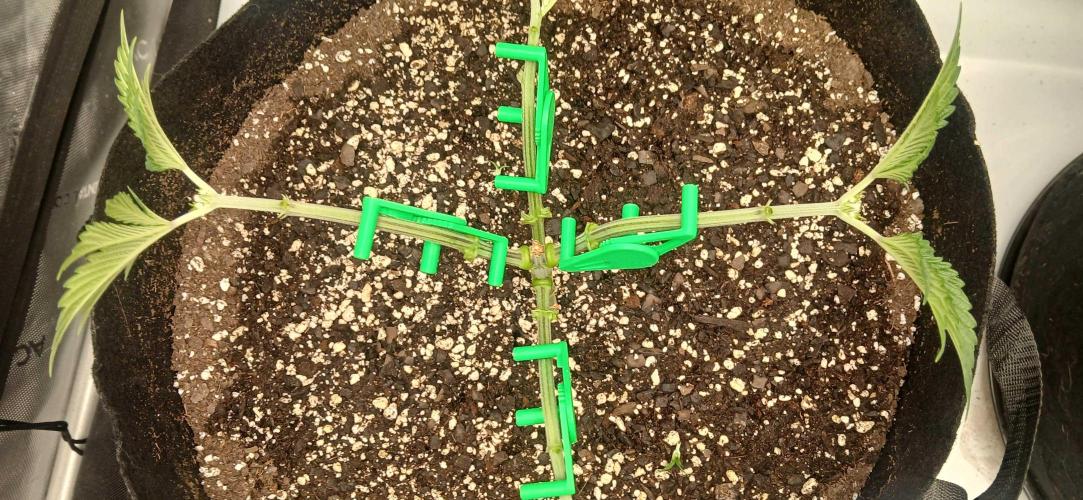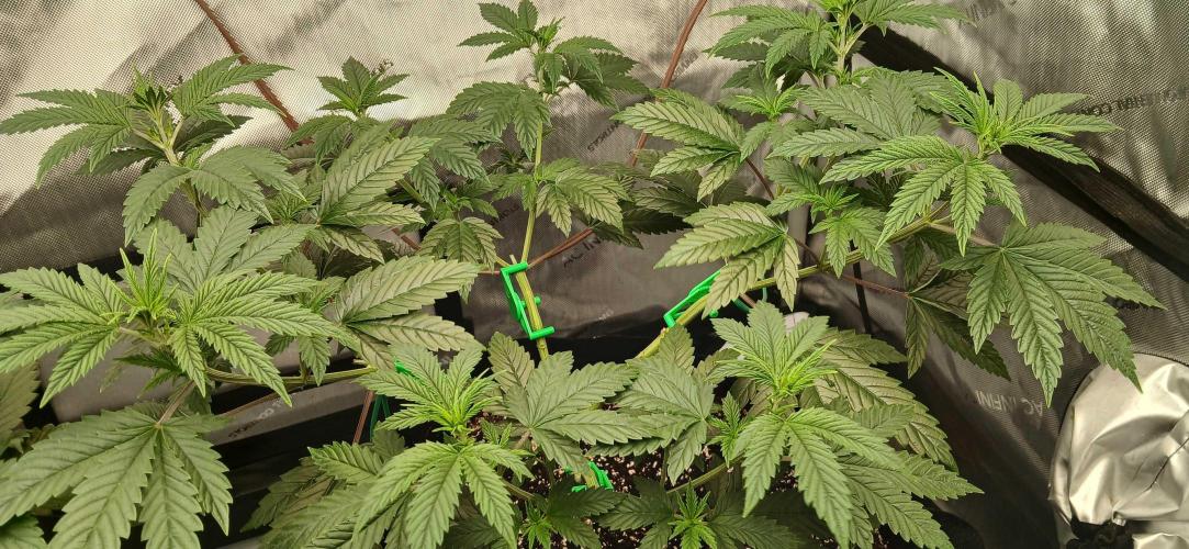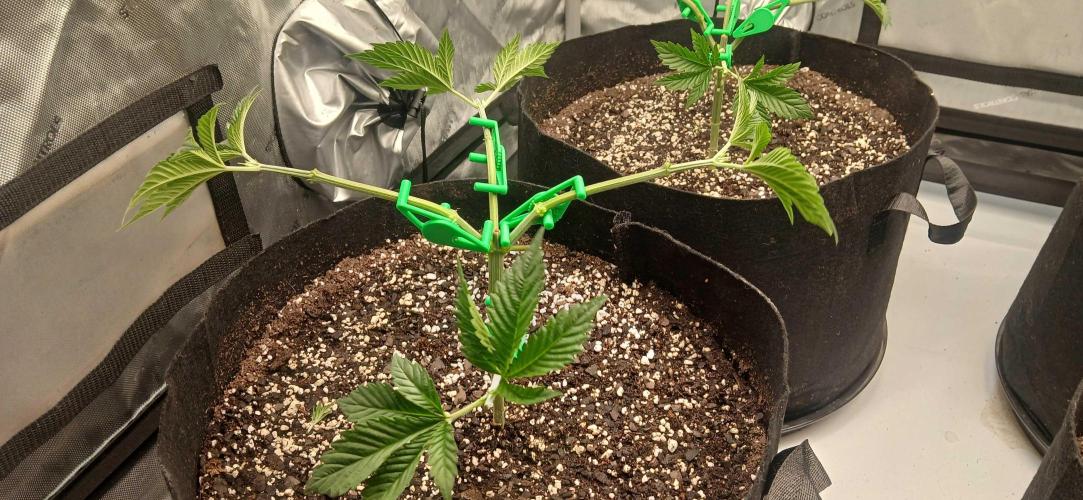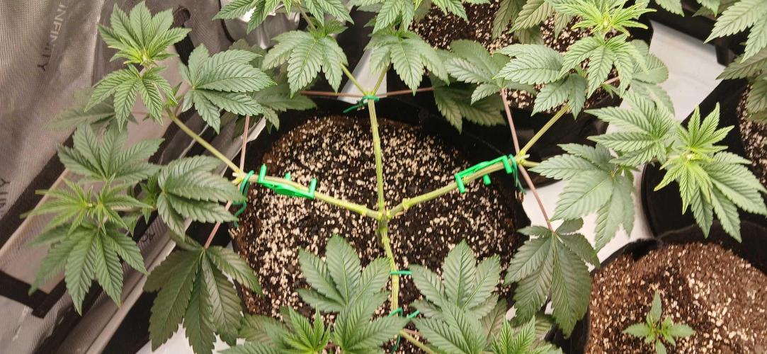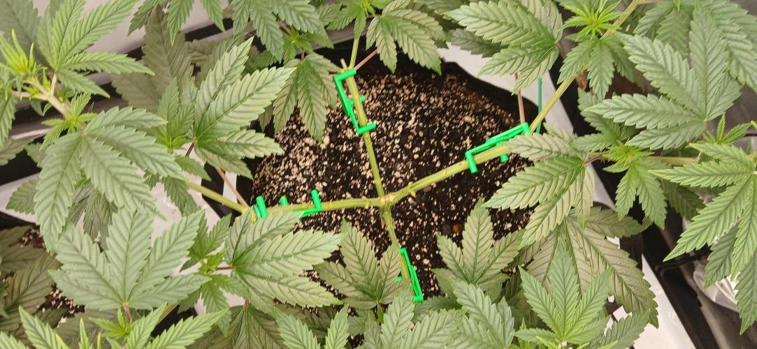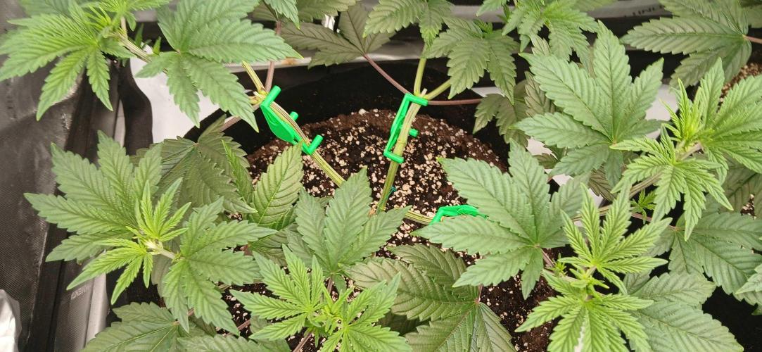 TranquilBottleWizard Week 4 of Veg Final topping of the ladies brining us to 8 mains per plant. From here on out ill be focusing on trying to keep branches flat and try to gain some girth in the mains. Id day another 6 weeks of veg or less before flower which is exciting! Plants look healthy outside of the topping and trim. Good color and good leaf structure. So far so good! Ill up the water in the coming weeks along with nutriants.