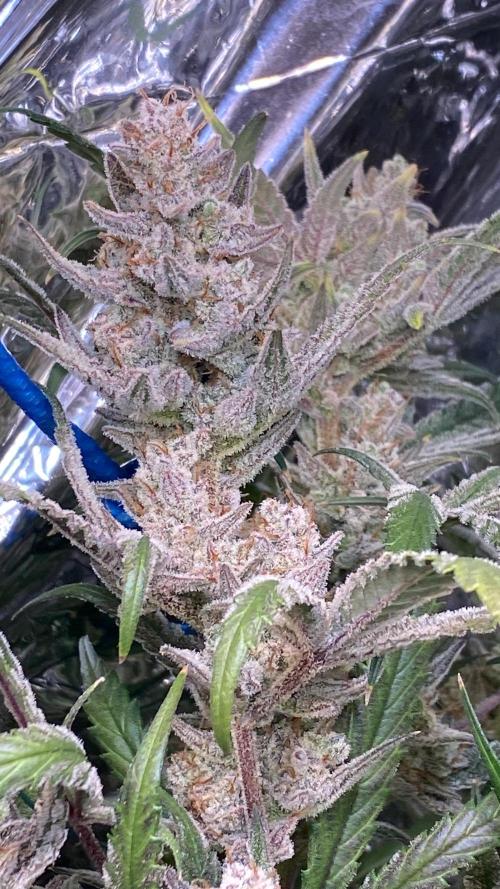 E27Grower Its week 12 and the plants are amazing. First time i filled the whole tent with delicious terpy buds. Trichome pictures are from Pineapple Slush, the plant will need 1-2 more weeks to finish up. Shes growing big ass dense nuggs filled with trichs. The PJ is insane, from her vegetation phase i would have never assumed that shell get that frosty and big. Big shoutout to SweetSeeds who really bred some fire automatics. These plants show me the importance of good stabilized genetics. Very pleasant outcome- PJ will need 2-3-4 more weeks, shes bulking up still and cant hold her buds herself anymore, i had to tie every node with sticks to stabilize her position. She just looks like the most fire clones you can buy from other companys- take a look yourself- her smell is special and i feel blessed to be able to grow this fire strain.