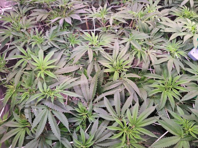 Buffi Die BB hat ebenfalls noch eine Woche, um sich von einer ausgiebigen Entlaubung zu erholen, bis die Blüte beginnt. Licht ca. 450 µmol/s