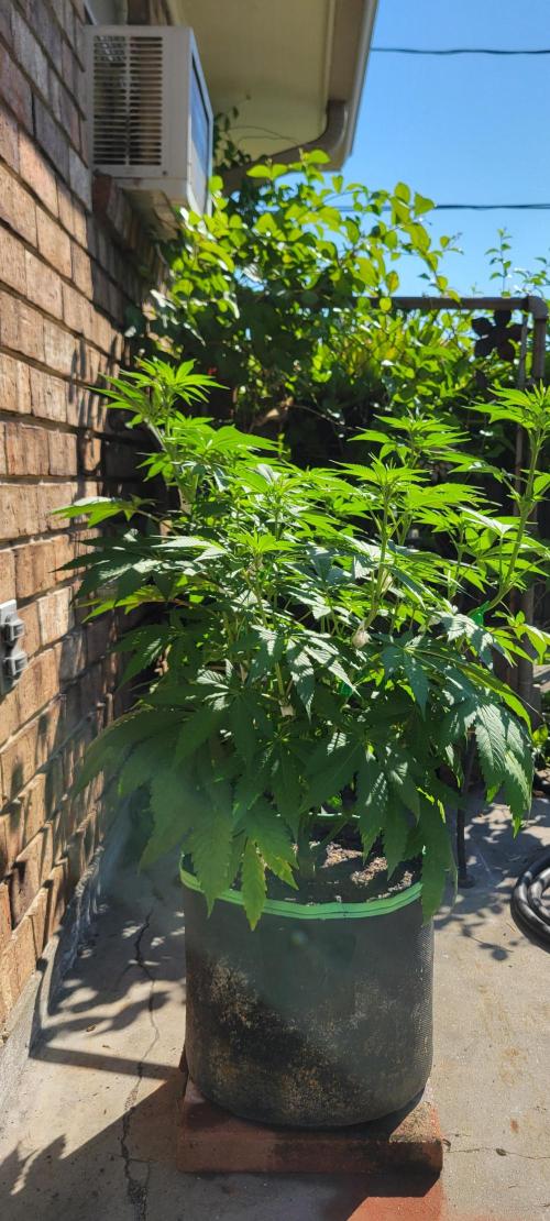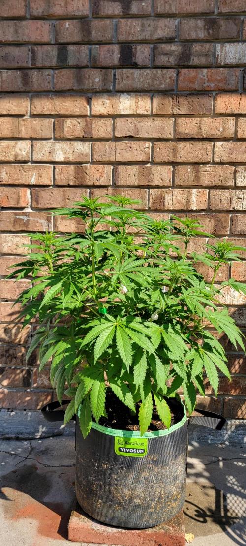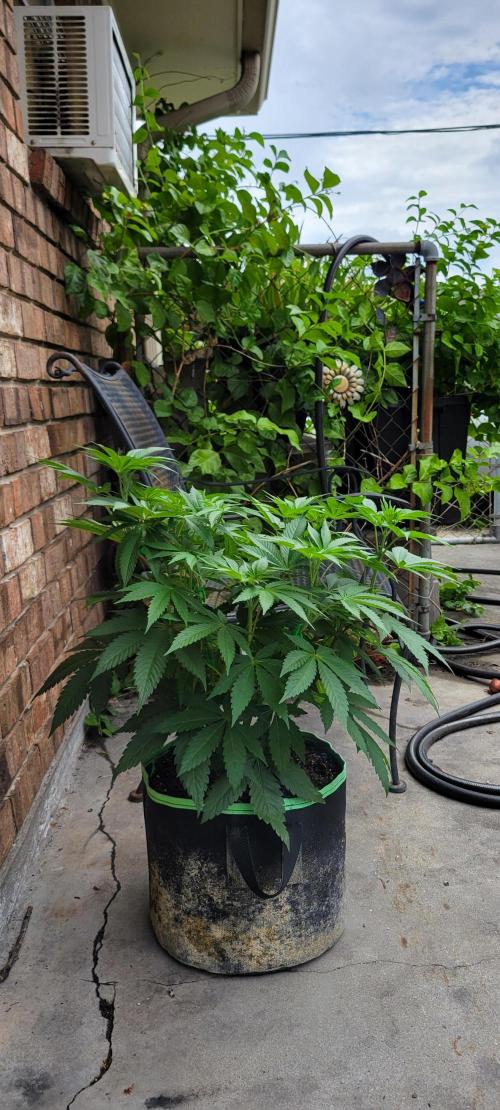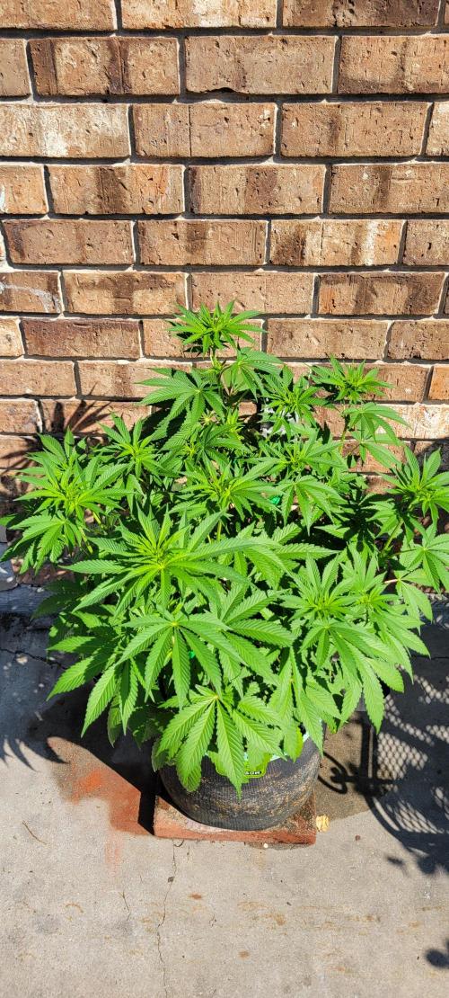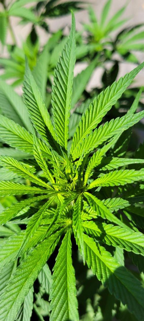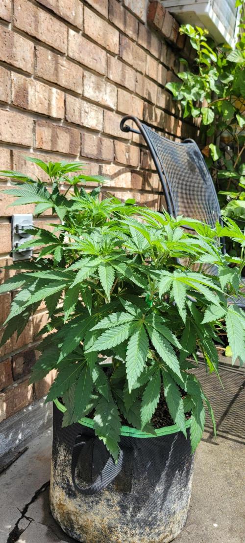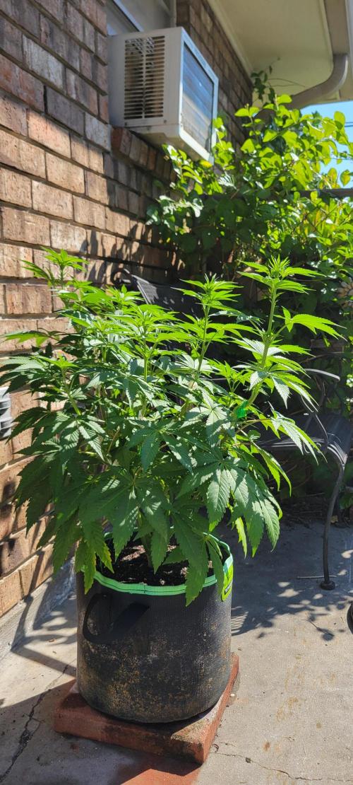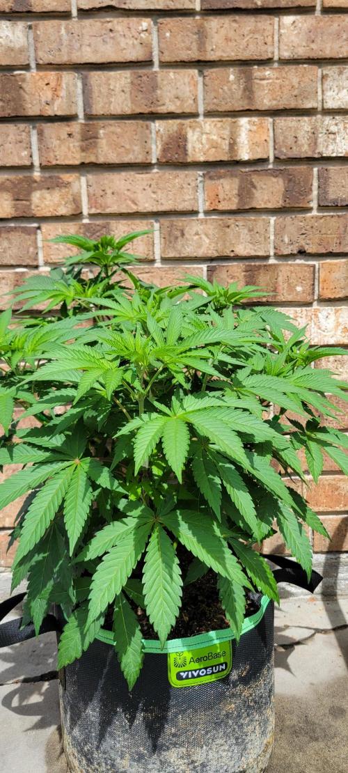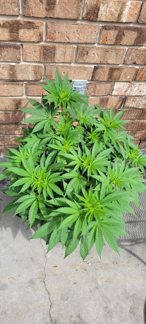 PavementPunk Shes been stretching and making lots of nodes im about to get rid of at least a few and low bud sites probably a light inner under canopy defoliation too. Good foop spray this evening after all that stress too should help. Thinking about a half dose bloom food in 3 or 4 days to get that transition into bloom going. Shes fully adjusted to the sun and soaking it and water up rapidly. Ive top and bottom watered 3 mornings in a row until her pot is nice and saturated and heavy. Gonna try to clone a couple chutes i remove. Im definitely revegging this Queen and wouldnt be surprised if she was around for a while. My only complaint is her lack of pest resistance hopefully more silica will help through a diatomaceous earth application all around. But she is a vigorous strong plant and its exciting to see her grow. Hopefully my runt removal is the right thing and the right time 🤞growers love yall