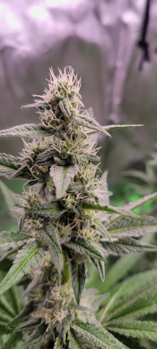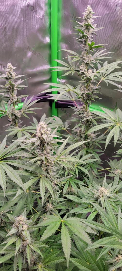 PavementPunk Gave a half strength dose of strive nutrients for the first time. Half strength dose of flower fuel yesterday. First feedings. She is robust and a beautiful color and won't stop stretching! Lol the power of the sun is evident. I may have to super crop her if she keeps it up, im trying to keep her low profile outside. Probably gonna finish her in the tent if i can fit her. There are some bug issues out there to be expected. Ive been doing what i can but i cant neem her anymore. All in all i really like this plant and this has been a pleasant grow. Growers love yall