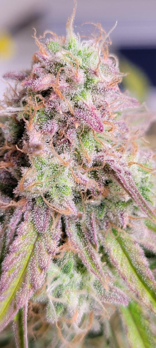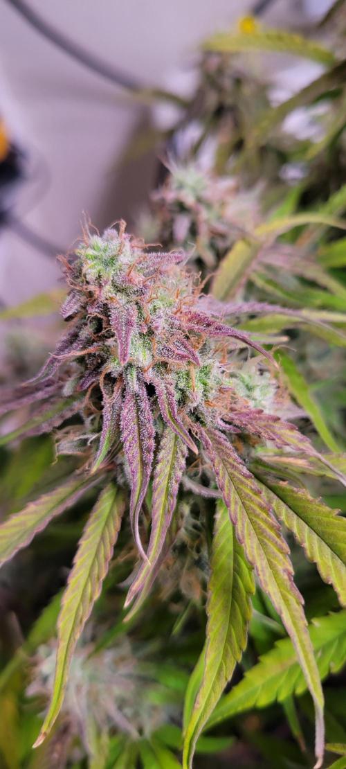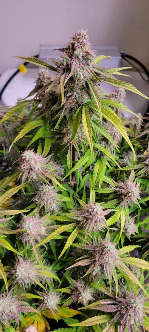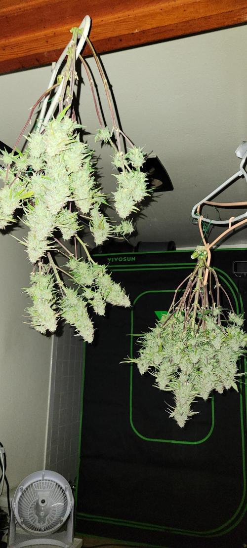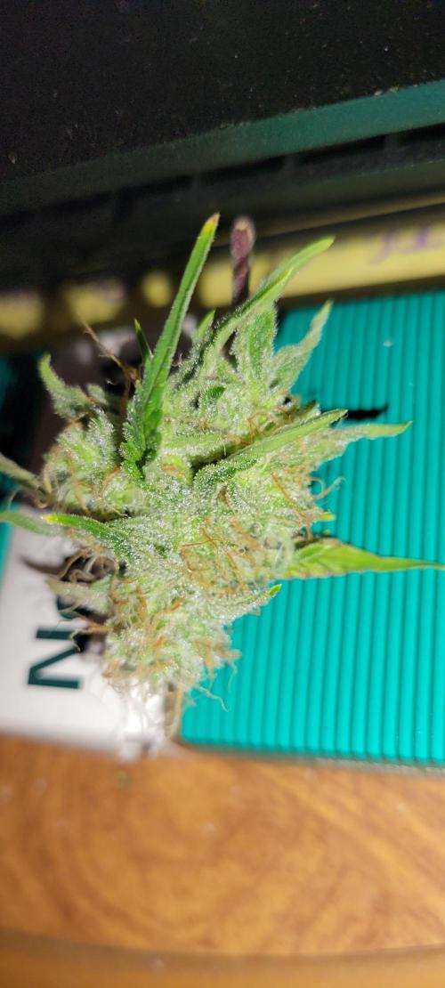 A pleasant grow and good harvest for not much fuss. I only gave her a 9 because she is a bit leafy and its a bit much to wet trim. I think if i would have gotten rid of more runt branches i couldve gotten 6 to 8 big buds but alas im still learning. This month actually marks one full year of growing for me. Ive come a long way in a year as a gardener and a human. My setup as well lol i digress the Wurlz F1 is sweet and fruity with a little herb smell in the background all around i like it and may pop the other 4 for a full tent of em in a future grow. Lemon cherry cookies and strawberry gorilla are next with a possible grape ape f1