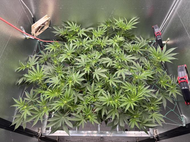 Закончилась фаза вытягивания, смог удержать растение хорошим и не длинным, все соцветия будут получать хорошую энергию от солнца