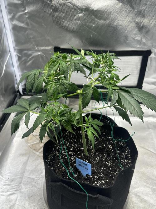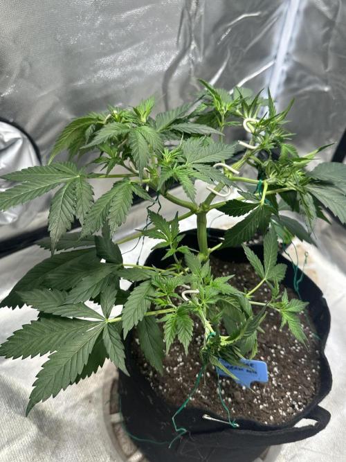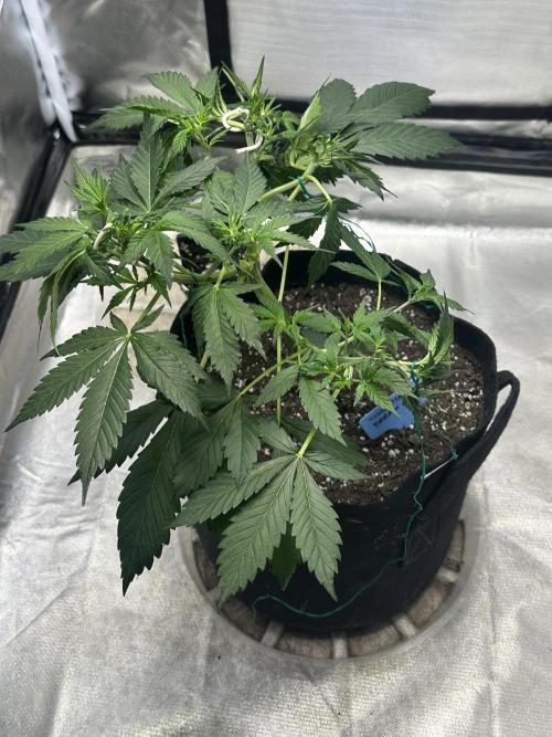 Puff_TM_Dragon Staying on top of LST training on the daily in anticipation of flower stage. Signs of pre flower. I thought it would be blooming in earnest at this point but surely will by this time next week. No rush since it gives me a few extra days to train. Wishing I hadn’t snapped one of the branches as it’s growing asymmetrical and forcing to train it to fill in the gaps. Definitely putting off a smell when fooling with the clips. I amended the reclaimed soil in the bottom half of the bag at the start of the grow. Not sure if I should hit it with some bloom nutes and some recharge at this point.