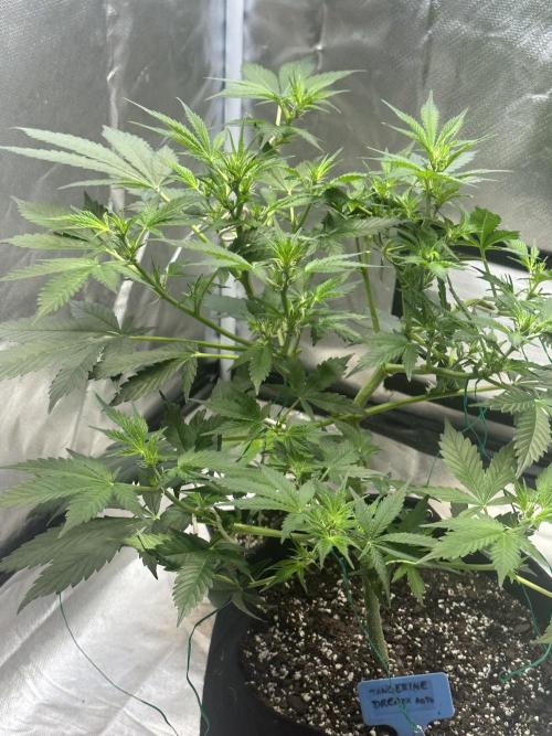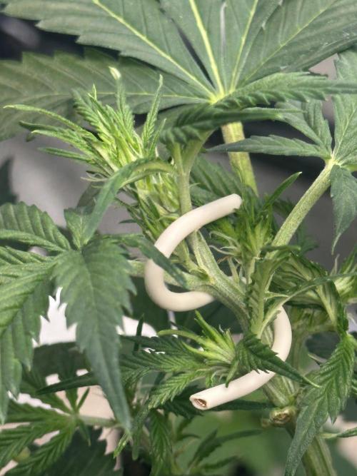 Puff_TM_Dragon Finally began flowering. Slow roller but looking very healthy. The wire “S” clips are not ideal but are working ok. Accidentally topped one of the branches trying to get the hang of using them.
