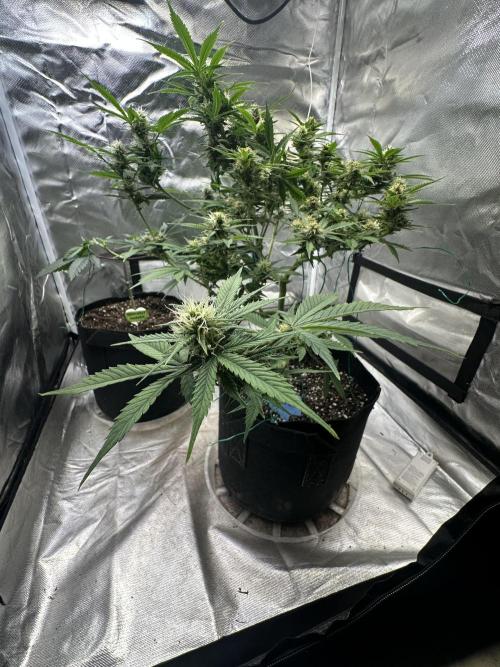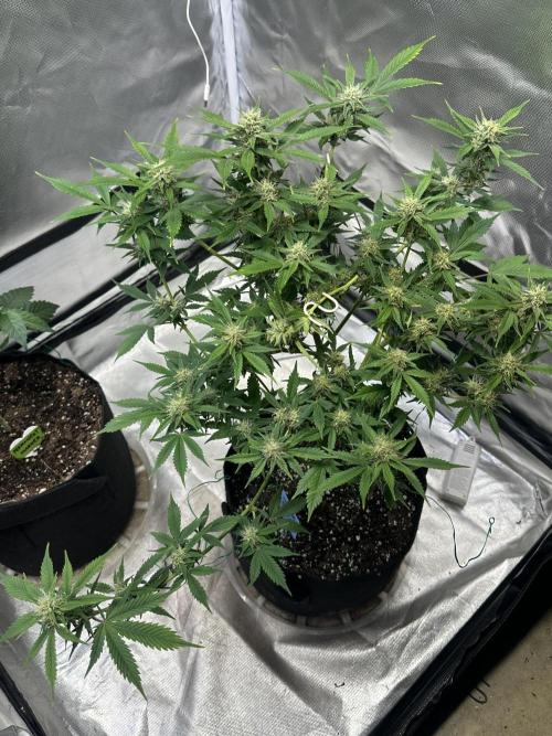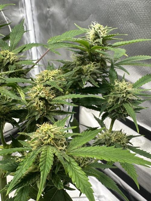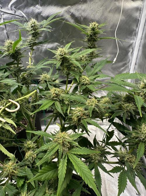Puff_TM_Dragon Couple days late updating the diary. Some light LST and minor defoliation. Not the prettiest plant in the world but she seems to be very happy at the moment. Buds are starting to fill in. It’s definitely putting off sweet odor but yet has hints of fuel as well. No nutrients in the past week but I think I’ll add a light dose of Dr Earth Flower Girl and perhaps a hit of recharge on the next watering. That should carry it to the end I think.