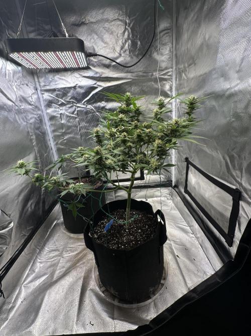 Puff_TM_Dragon Staying on top of LST training on the daily in anticipation of flower stage. Signs of pre flower. I thought it would be blooming in earnest at this point but surely will by this time next week. No rush since it gives me a few extra days to train. Wishing I hadn’t snapped one of the branches as it’s growing asymmetrical and forcing to train it to fill in the gaps. Definitely putting off a smell when fooling with the clips. I amended the reclaimed soil in the bottom half of the bag at the start of the grow. Not sure if I should hit it with some bloom nutes and some recharge at this point.