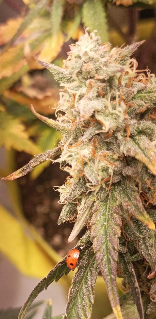 Hexahydrat666 Die Marienkäfer helfen ein wenig die Blattläuse in Schach zu halten.Ganz in den Griff werde ich die Plage damit wohl nicht mehr bekommen. Die kleinen Biester Schwächen die Pflanze enorm, so daß die Blüten nur langsam wachsen. Ich bin aber noch guter Dinge das die Pflanze bis zur Ernte durchhält.