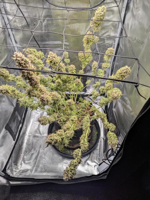 @Aeromatics, I'm thrilled! Also, quite concerned that she'll crowd the entire tent. All of her tops now receive at least 400 PPFD, with the higher ones catching 900 PPFD. So, I'll maybe whip out the SCRoG net one of these days to properly spread her out.