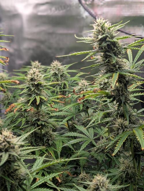 It's amazing to see what she does with just water and very minimal nutes, her latest feed with a half dose of PK13-14 left her with burnt tips already. She's basically yelling at me "LEAVE ME ALONE, I GOT THIS!! when it comes to nutes.