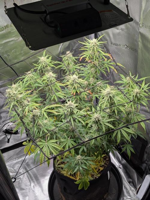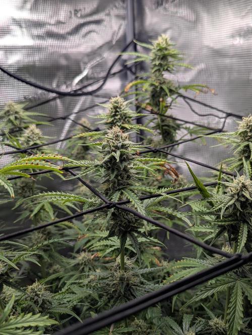 @Aeromatics, I'm thrilled! Also, quite concerned that she'll crowd the entire tent. All of her tops now receive at least 400 PPFD, with the higher ones catching 900 PPFD. So, I'll maybe whip out the SCRoG net one of these days to properly spread her out.