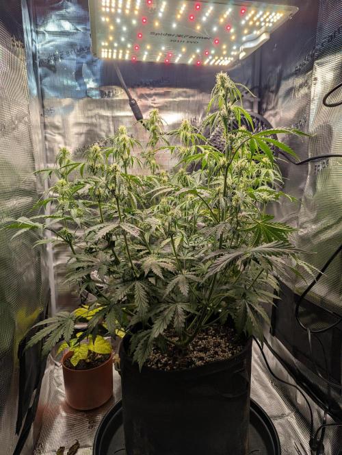 @Aeromatics, I'm thrilled! Also, quite concerned that she'll crowd the entire tent. All of her tops now receive at least 400 PPFD, with the higher ones catching 900 PPFD. So, I'll maybe whip out the SCRoG net one of these days to properly spread her out.
