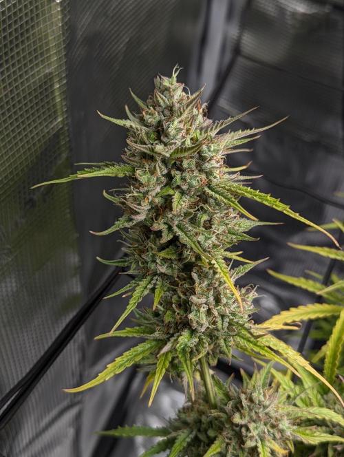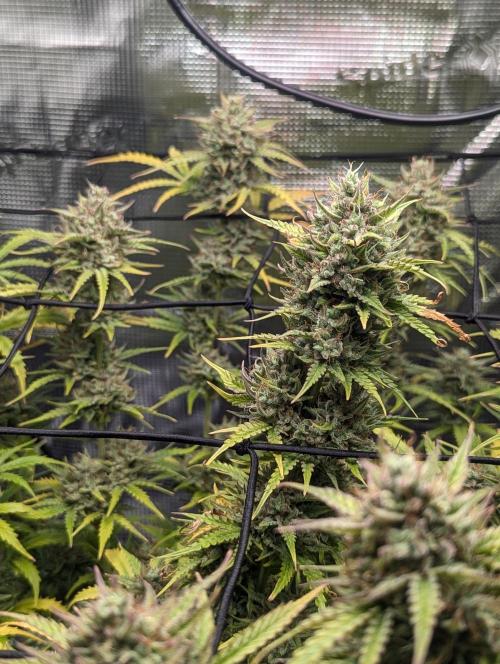 Compared to my last grow (Sherbet Queen), where topping led to four main branches and a constant struggle to keep the lower nodes on par with the uppers — eventually resulting in four dominant colas above a cluttered lower canopy — this grow is already showing more even development. All the smaller apexes are keeping pace with the top, giving me confidence that this canopy will grow much more uniformly. I’ll still try to keep the main stem in check, but overall this approach feels more balanced.