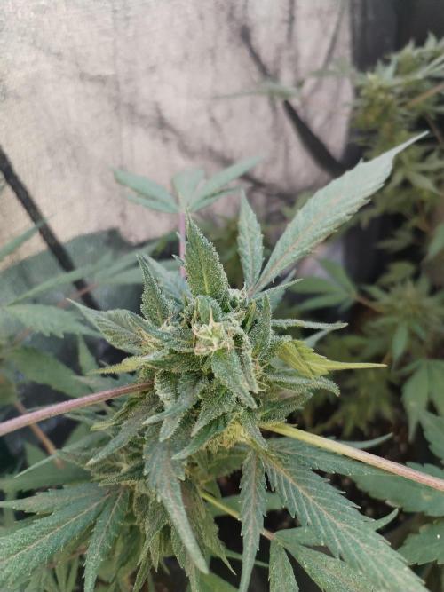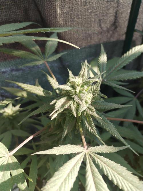 Riboh The greenhouse is officially smelling like a promise of funk-to-come. Supercheese has hit her stride in week 2 of flower—stretching up like she’s trying to peek over the neighbor’s fence. Bud sites are popping everywhere, little clusters of white hairs waving around like they’re trying to flag down pollinators that will never be invited.