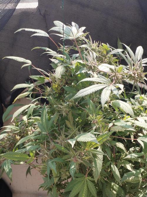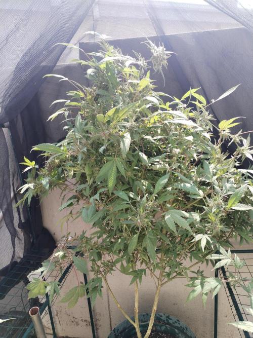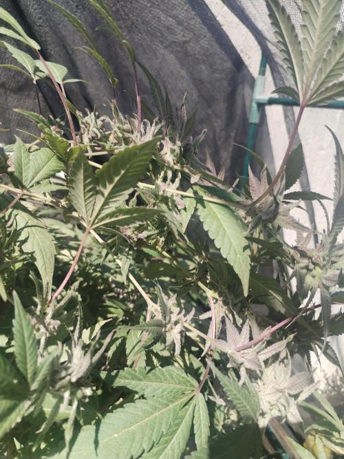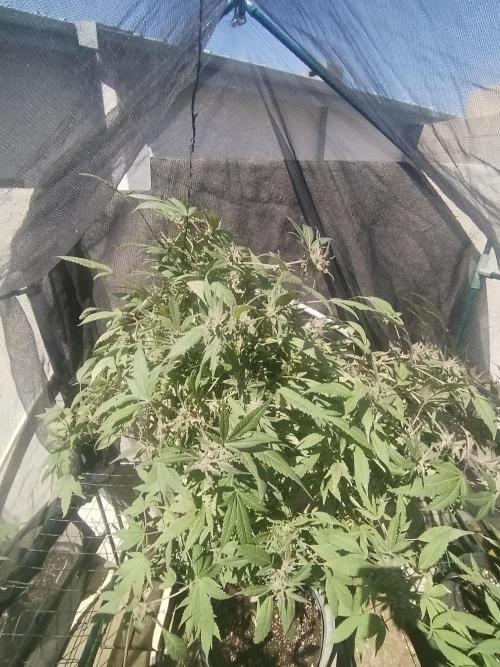 Riboh It’s been a wild week for Tart Pops — nature threw a thunderstorm her way, and she took quite a beating. A few colas bent under the weight and wind, but quick action with wire supports has her standing tall again. She’s showing resilience, though some of the heads are still sagging as she recovers.