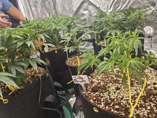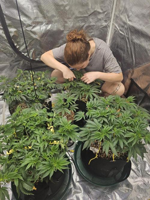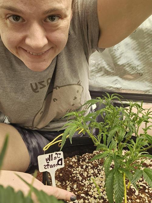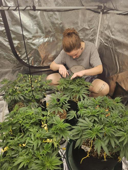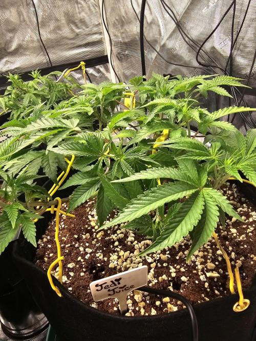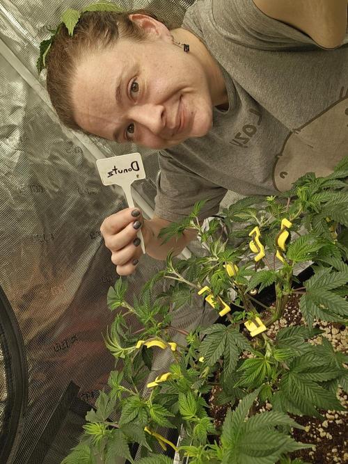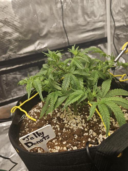 Ohunt1776 My girls are soo happy! They got a 2gal calmag flush (ph=5.8, ec=0.4). Ppfd about 420. I cut their inward facing leaves to let them breathe a little better. (Jelly Donuts was getting bushy in particular.) They all have clips to all their branches, and I'm starting to clip their top nodes!!!