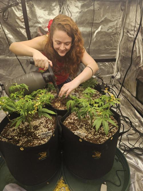Ohunt1776 The girls reacted well to transplant! They are really happy, so we started using the bud clips and did some light defoilation/lollipoping. (My pup, Mya, was given leaves as part of her birthday surprises. And she LOVES them!) We also added new leave in moisture meters. I broken the top branch on Chicken N ' Waffles so I gave her a branch clip and a prop. Poor girl... Mommy is sorry. (She seems to be recovering perfectly fine.)