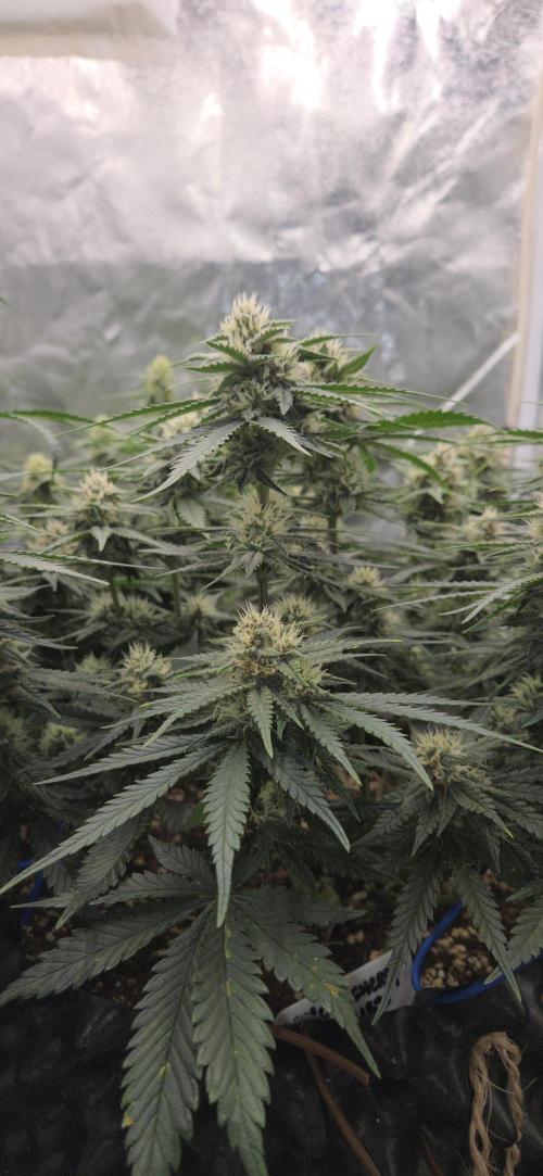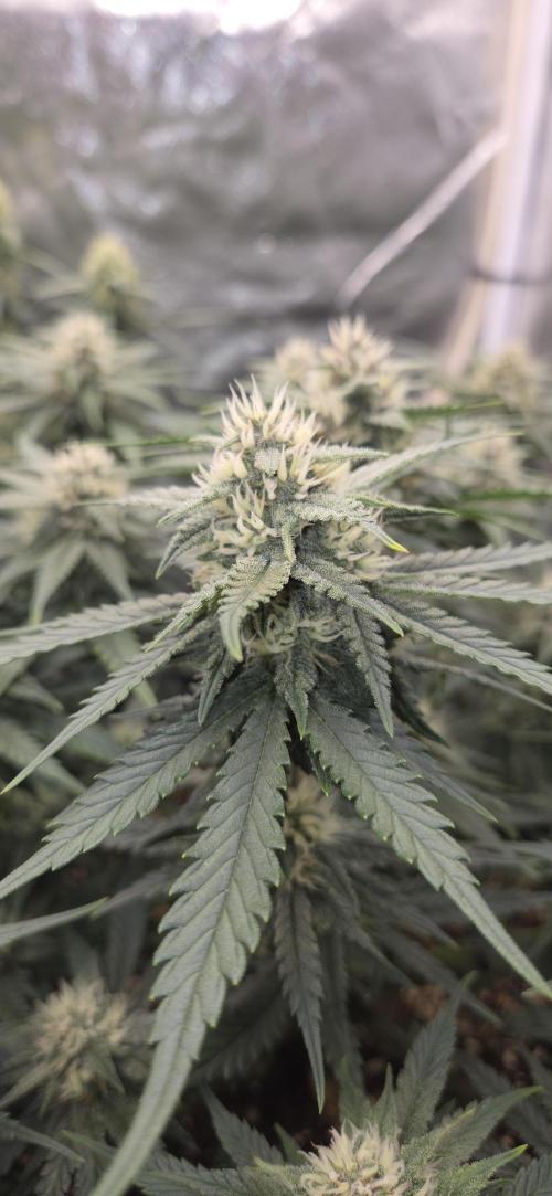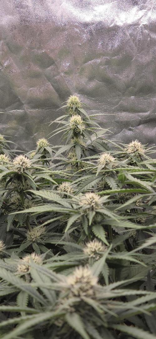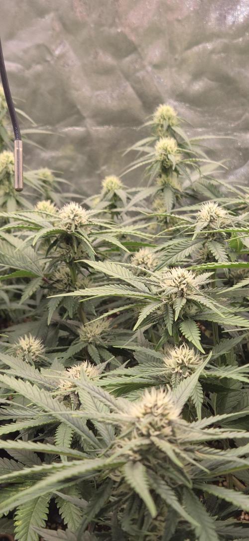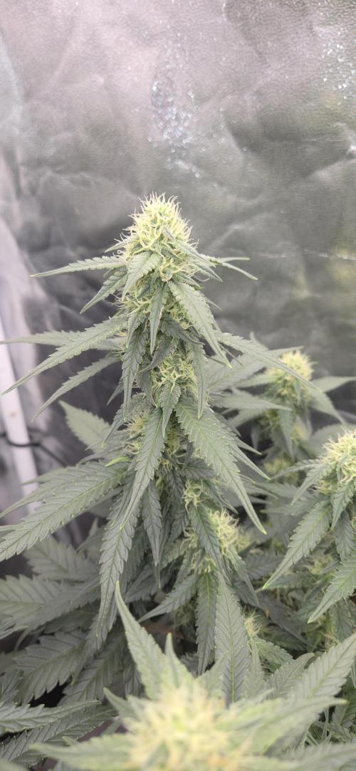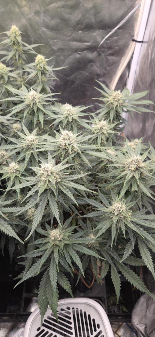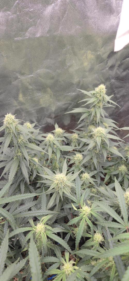 Spacehaze123 I must say, the girls are doing a little beter than expected. Although the chem candy lags behind, it is producing more pistils than I thought it would. And looks like it is going to yield a little more than expected. Same for the blue dream in the back. She's making nice long cola's which will hopefully fill the whole branch in a couple of weeks. The lemon cherry cookies is fattening up and starting to go to the end phase. I will therefore stop feeding this plant nutriënts for it's last 2 weeks of life so all the built up nutriënt can be flushed out to produce a nice and clean smoke. Don't get me wrong, they are no monsters and it looked kinda bad for a while there. But overall I am quite happy with these autoflower in the end.