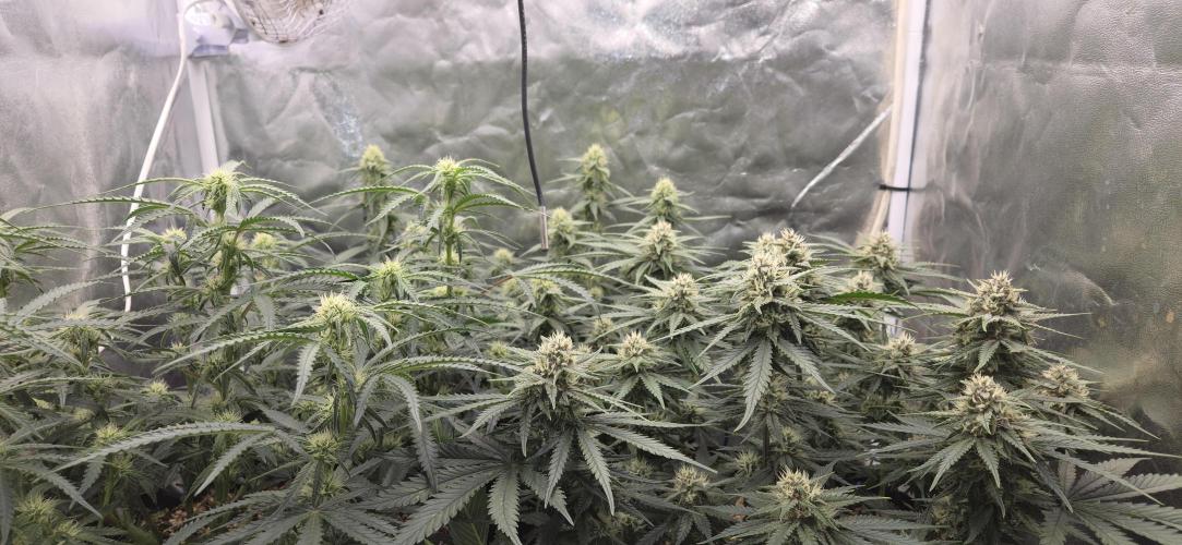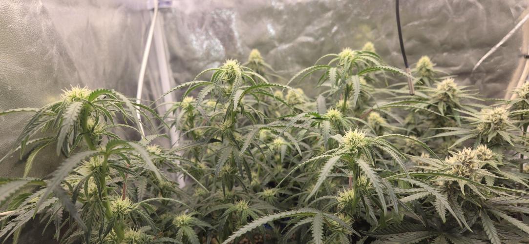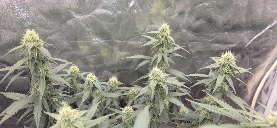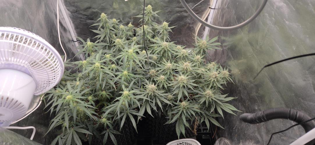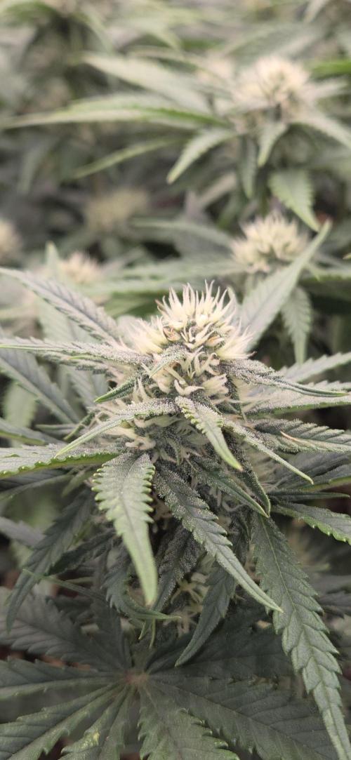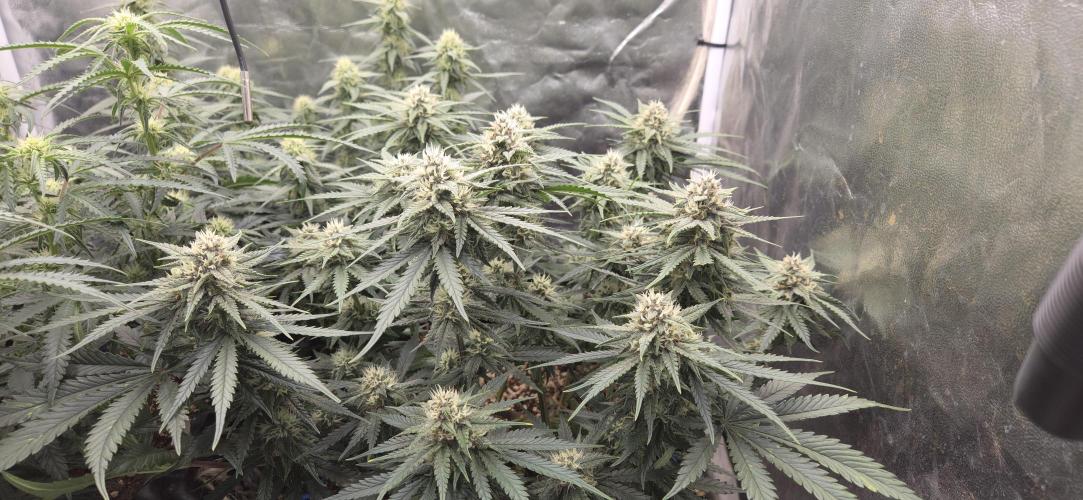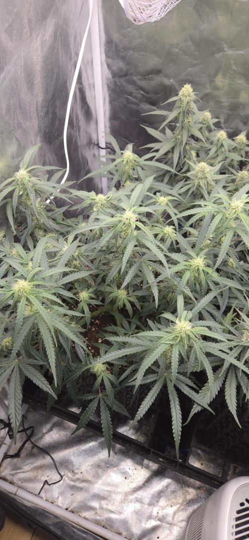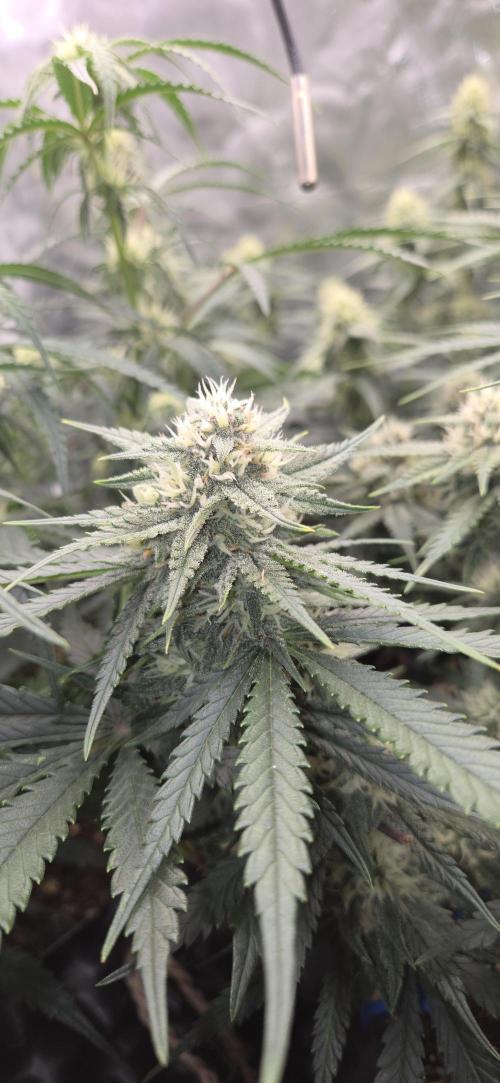 Spacehaze123 I must say, the girls are doing a little beter than expected. Although the chem candy lags behind, it is producing more pistils than I thought it would. And looks like it is going to yield a little more than expected. Same for the blue dream in the back. She's making nice long cola's which will hopefully fill the whole branch in a couple of weeks. The lemon cherry cookies is fattening up and starting to go to the end phase. I will therefore stop feeding this plant nutriënts for it's last 2 weeks of life so all the built up nutriënt can be flushed out to produce a nice and clean smoke. Don't get me wrong, they are no monsters and it looked kinda bad for a while there. But overall I am quite happy with these autoflower in the end.