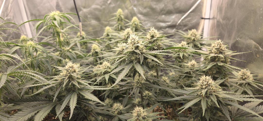 Spacehaze123 Flower has now fully set in on the lemon cherry cookies and the blue dream (the small one in the back). The chem candy seems to be lagging behind a little bit. This will not be a good run I guess :p. But I'm happy with what I get. Can't wait to get the tent free for one of the photoperiods though xD.
