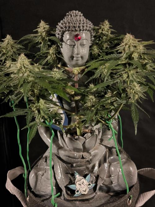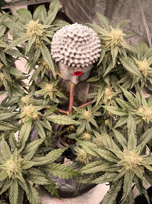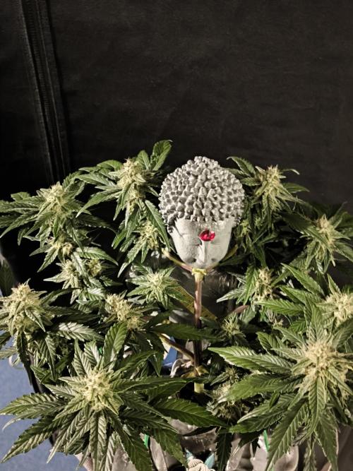 DevelGrow Hallo Freunde 👋 Do-Si-Dos F1 Auto von Zamnesia ist 35 Tage alt! Eine sehr schnelle und starker Strain! Der Plan ist gescheitert,die Pflanze um die Statue zu bekommen! F1 ist zu schnell dafür 😂😎👍 trotzdem habe ich noch versucht das Beste draus zu machen damit ein hübsches Gesamtbild entsteht! Bin sehr auf die Blüten gespannt! Keep Green and grow High ✌️🍀💙🍀